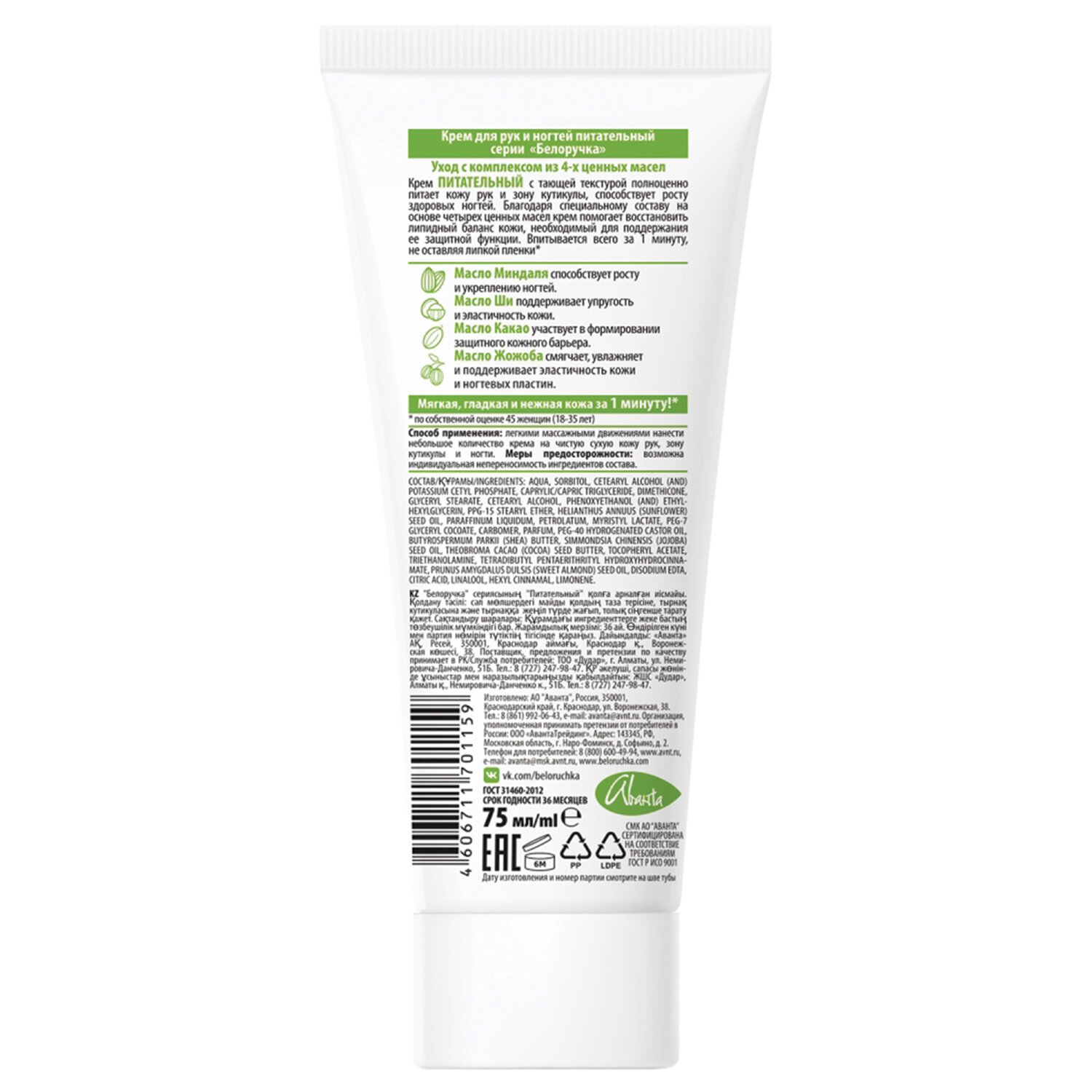 Крем для рук и ногтей питательный укрепляющий с маслами 75 мл, БЕЛОРУЧКА, 1668