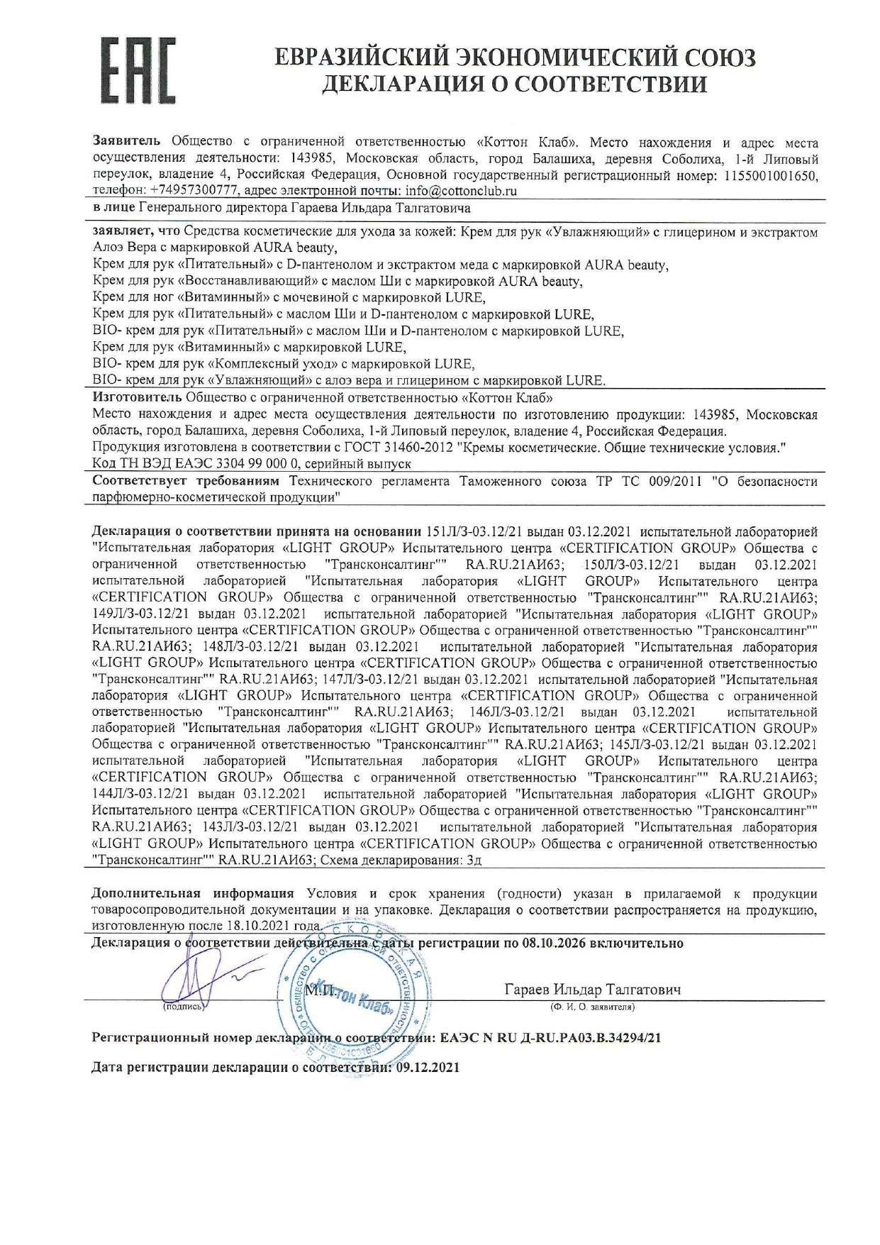 | Упаковка | туба |