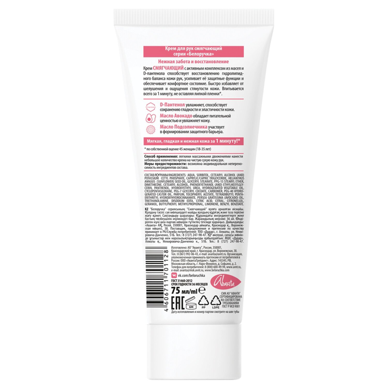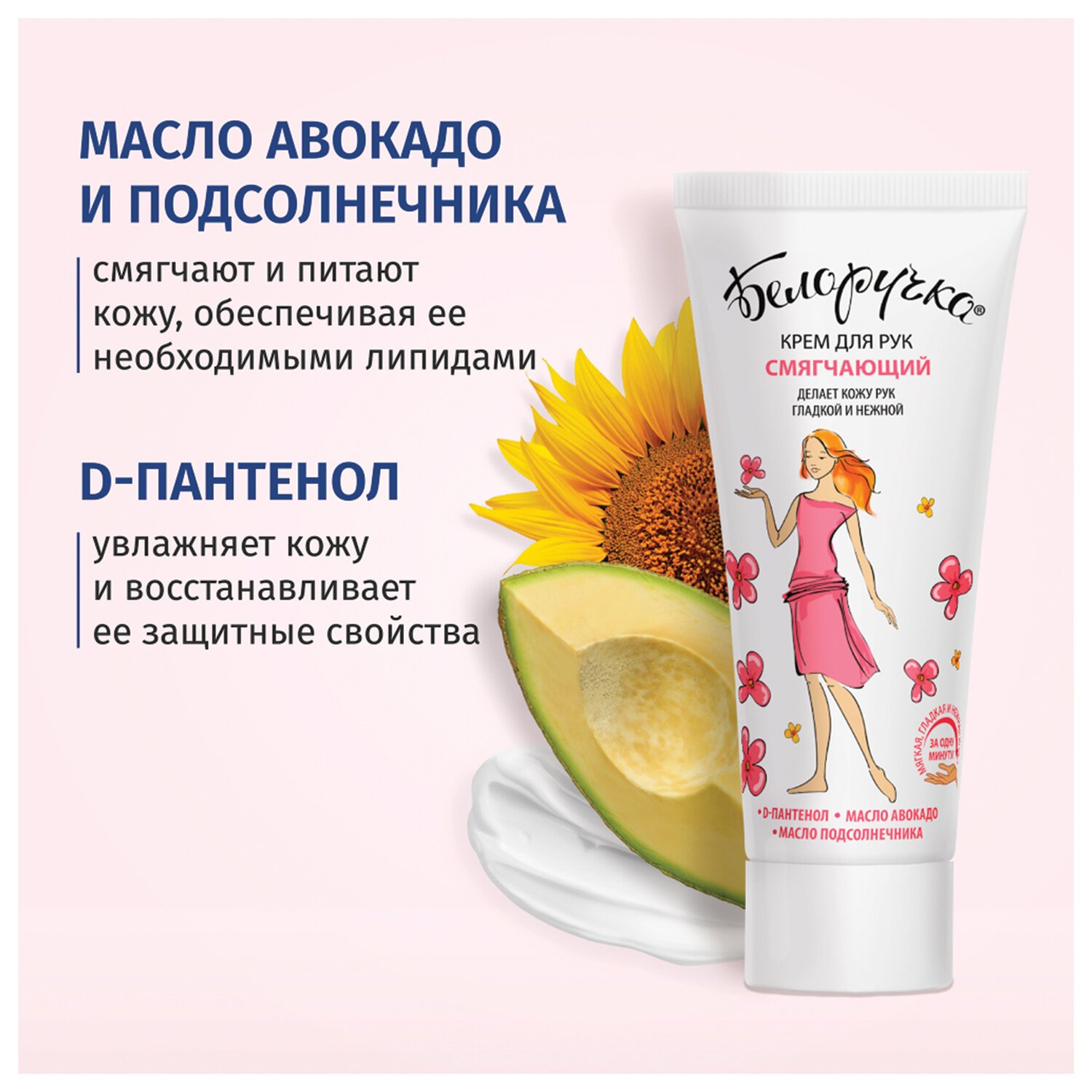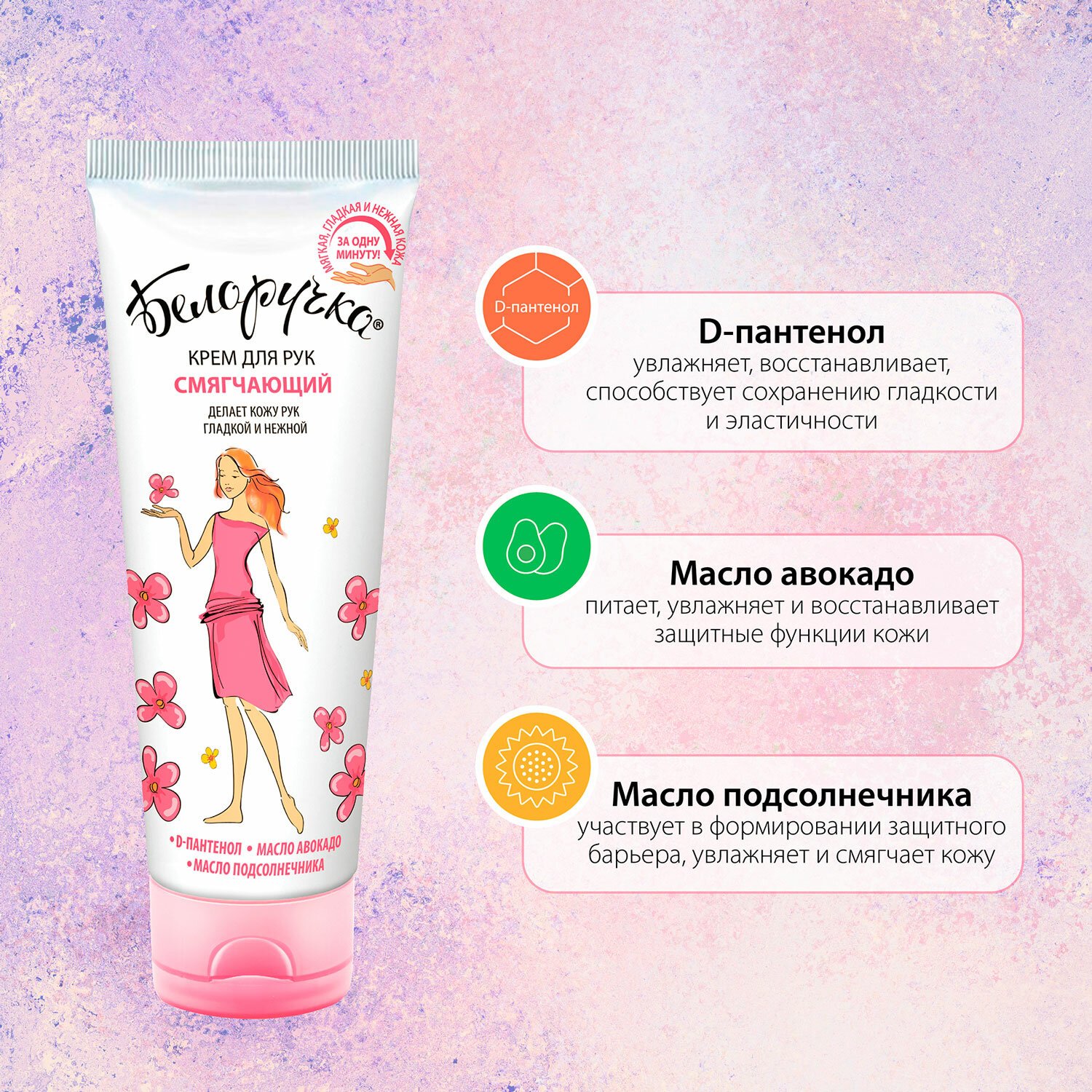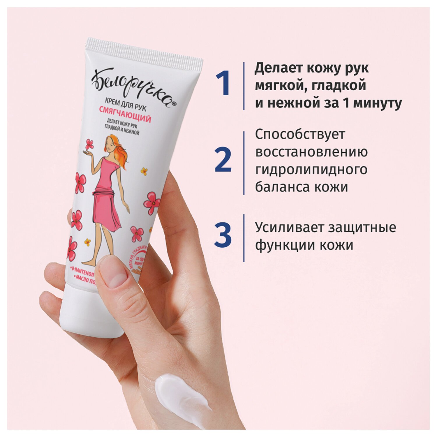 Крем БЕЛОРУЧКА "Смягчающий" для увлажнения и смягчения кожи рук. Подходит для всех типов кожи. Обеспечивает базовый уход.