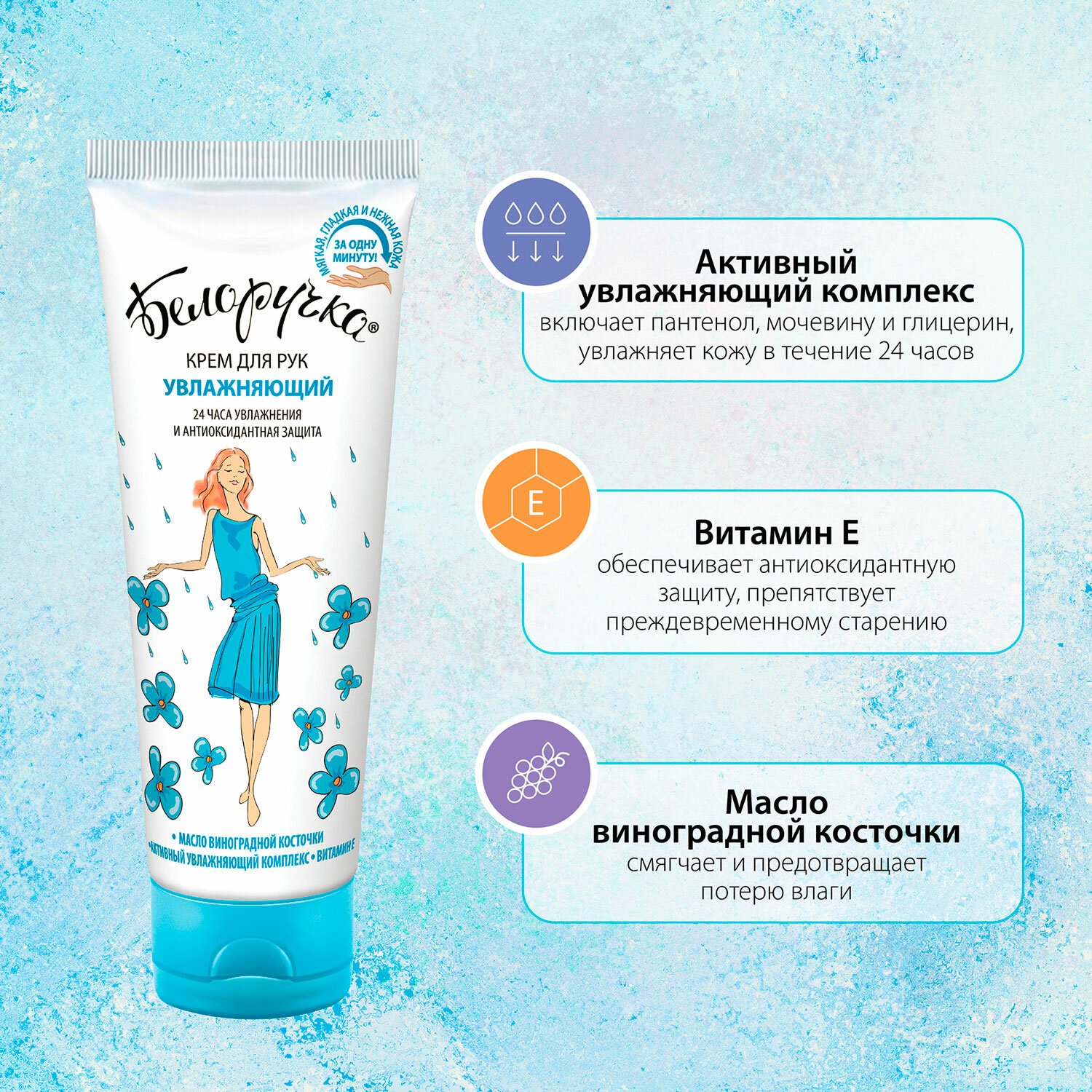 Крем для рук БЕЛОРУЧКА "Увлажняющий" с маслами и витаминами. Для всех типов кожи. Обеспечивает базовый уход.