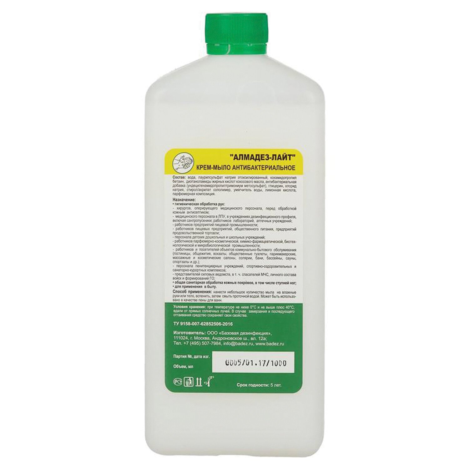 Крем-мыло антибактериальное 1 л АЛМАДЕЗ-ЛАЙТ, крышка, МАЛ-03