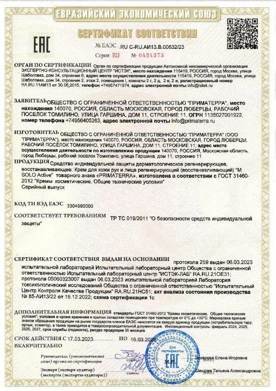 Крем для кожи рук и лица M SOLO ACTIVE регенерирующий (восстанавливающий).