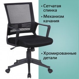 Кресло BRABIX "Wings MG-304", пластик черный, хром, сетка, черное, 532016