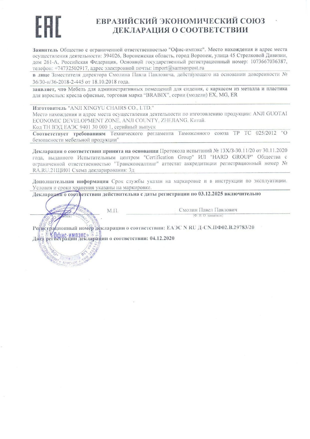 | Тип механизма | "Топ-ган" - качание с регулировкой под вес и фиксацией в 1 положении |