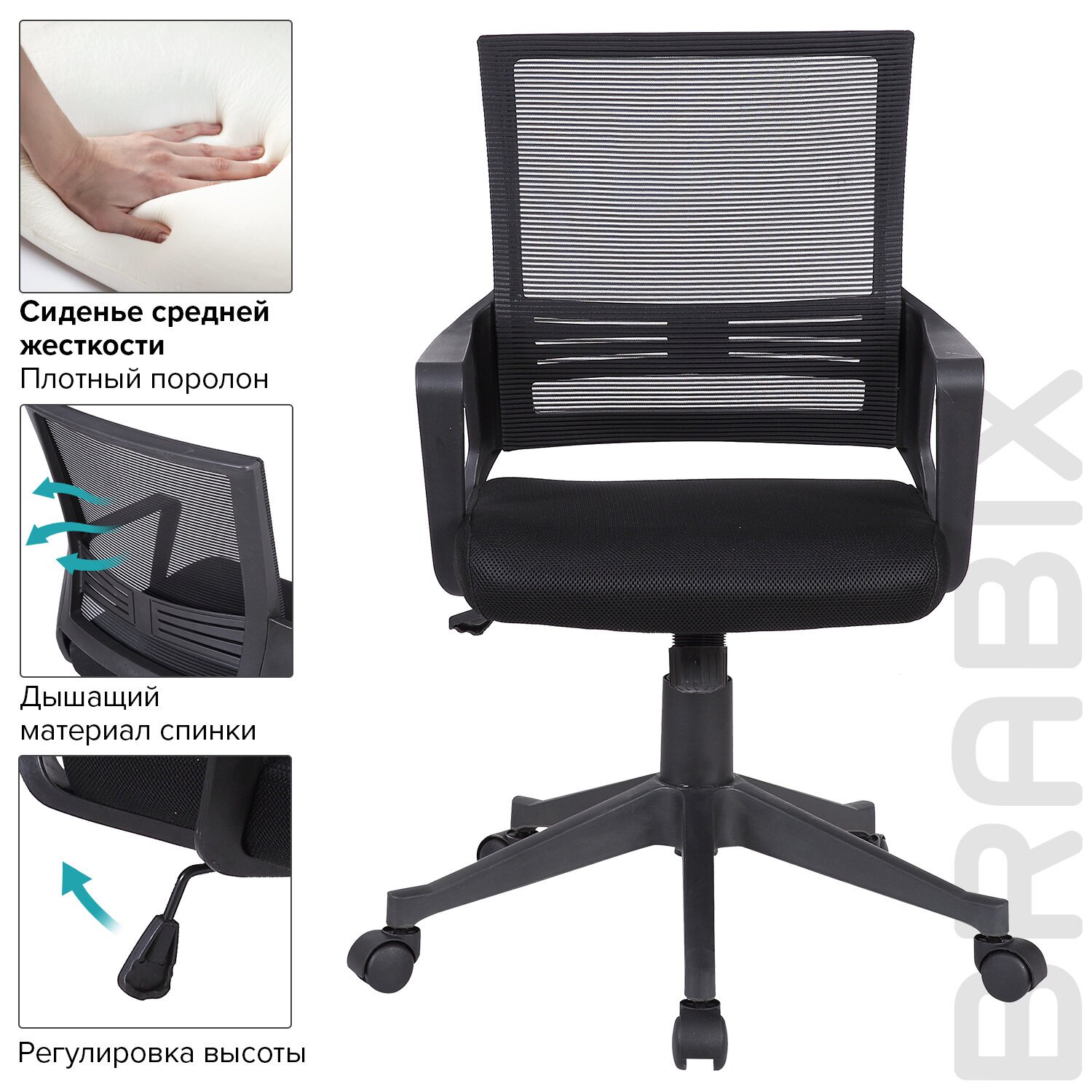 Кресло BRABIX "Wings MG-309", пластик черный, сетка, черное, 532015