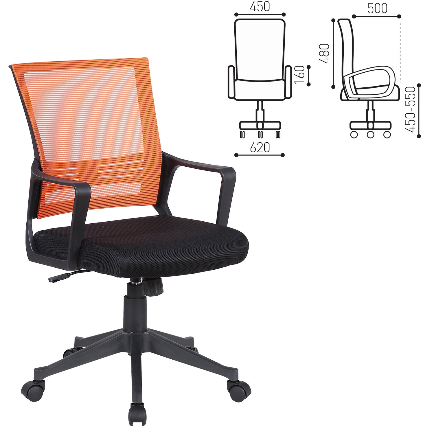 Кресло BRABIX "Fly MG-396", с подлокотниками, сетка, оранжевое/черное, 532084