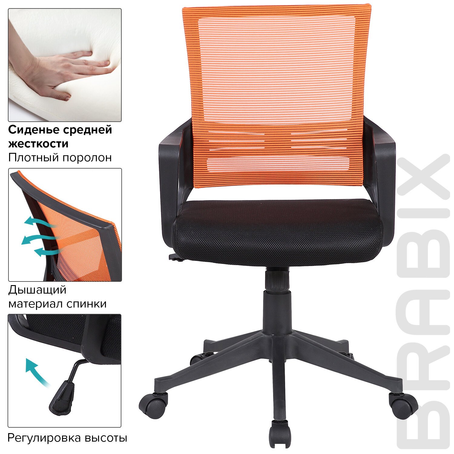 Кресло BRABIX " Balance MG-320", с подлокотниками, комбинированное черное/оранжевое, 531832