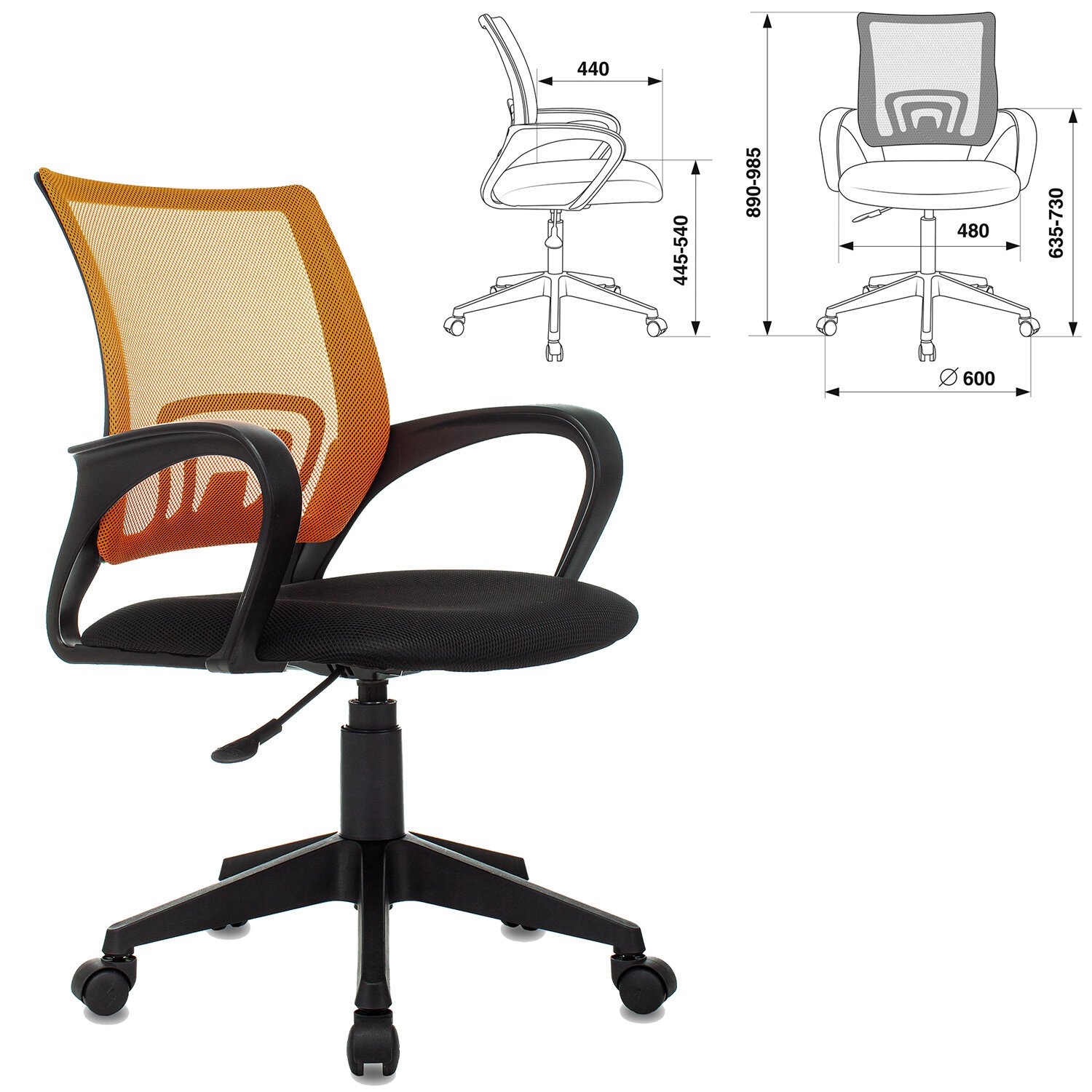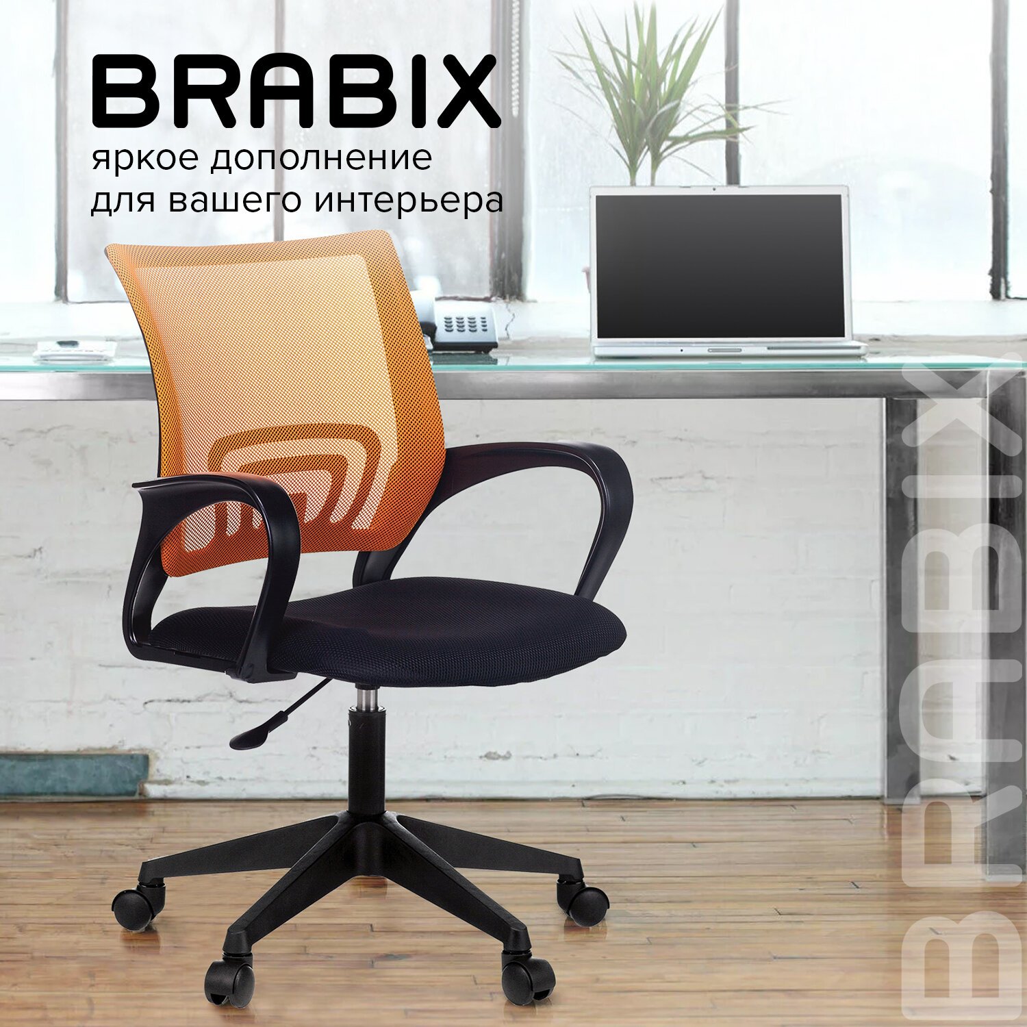 Кресло BRABIX "Fly MG-396", с подлокотниками, сетка, оранжевое/черное, 532084
