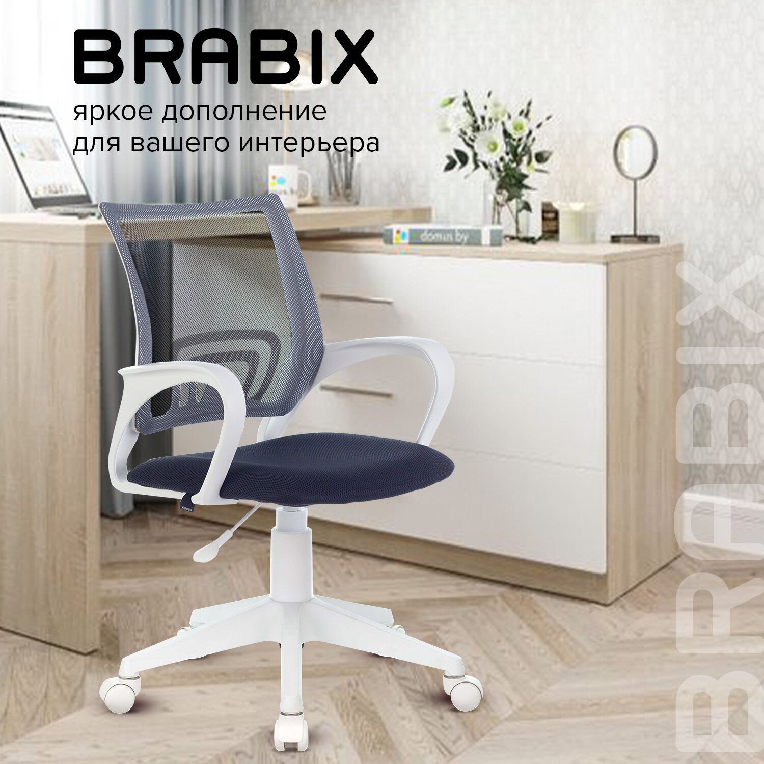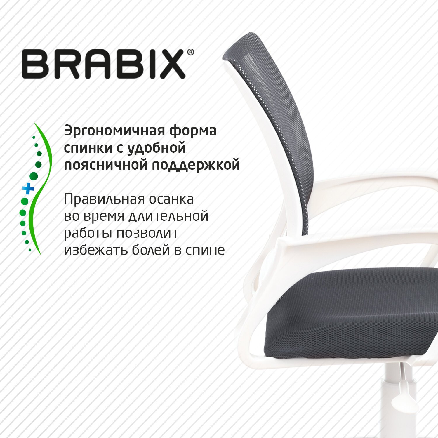 BRABIX "Fly MG-396" - доступное, качественное кресло с эргономичной сетчатой спинкой на белом пластике. Прекрасный вариант для повседневной работы в офисе и дома.