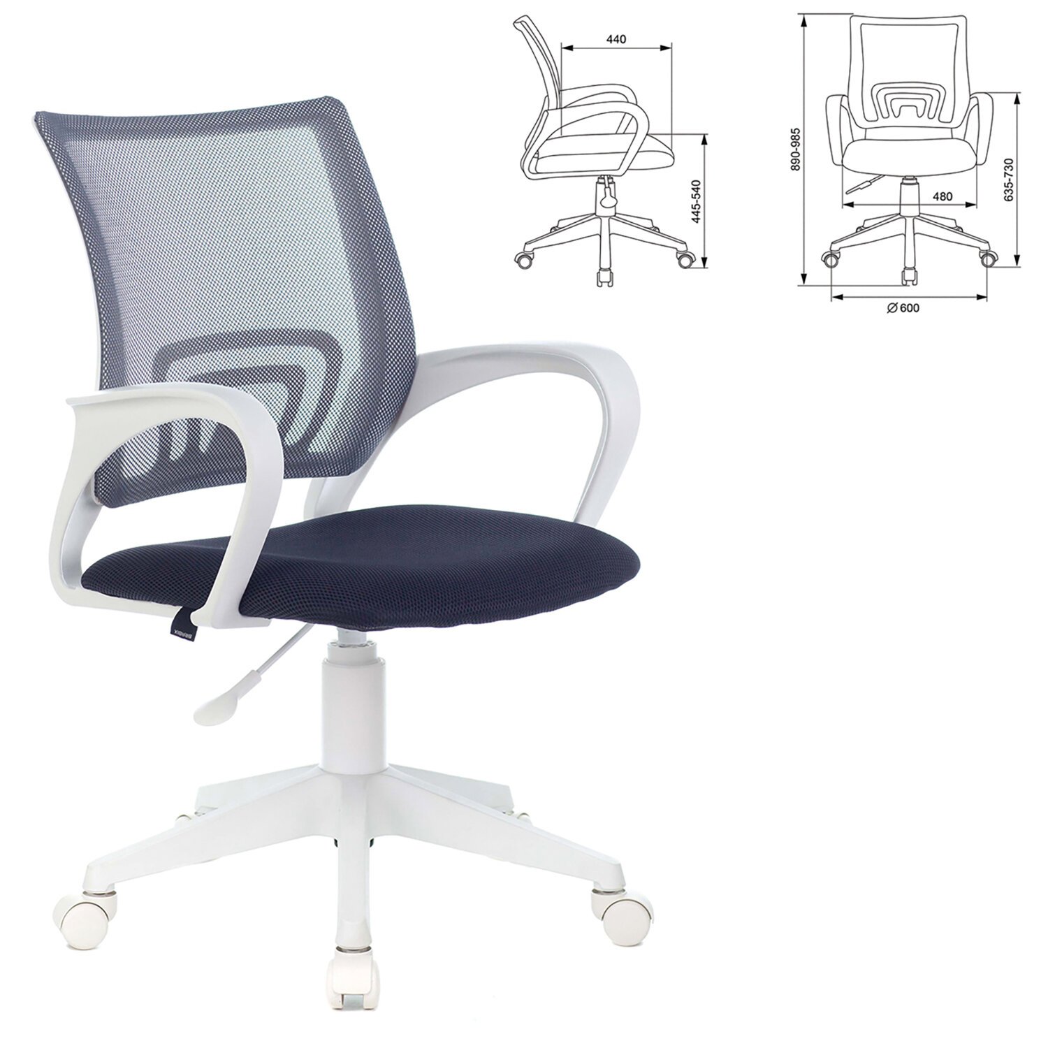 Кресло BRABIX "Fly MG-396W", с подлокотниками, пластик белый, сетка, темно-серое, 532400, MG-396W_532400