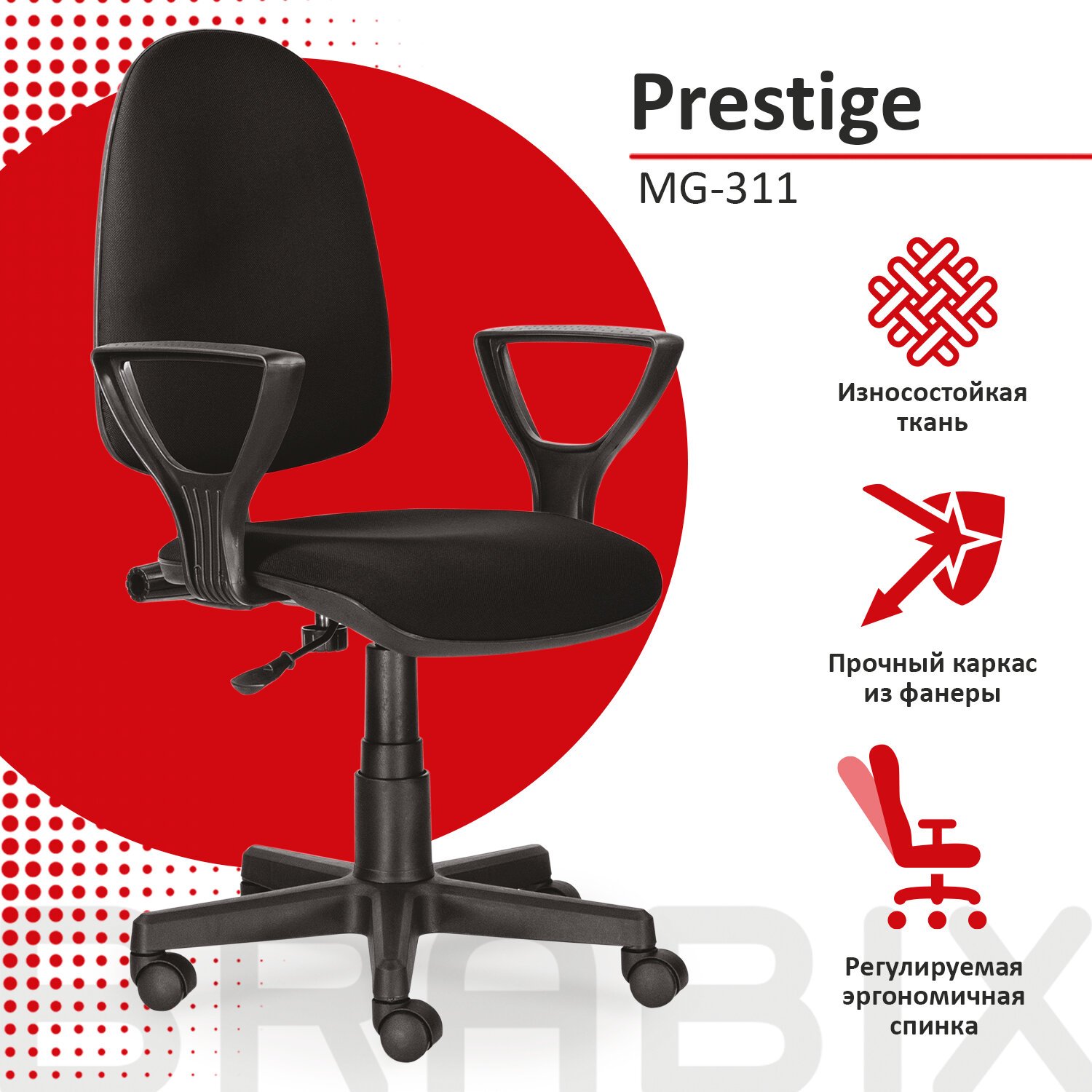 Кресло BRABIX "Prestige Ergo MG-311", регулируемая эргономичная спинка, ткань, черное, 531872
