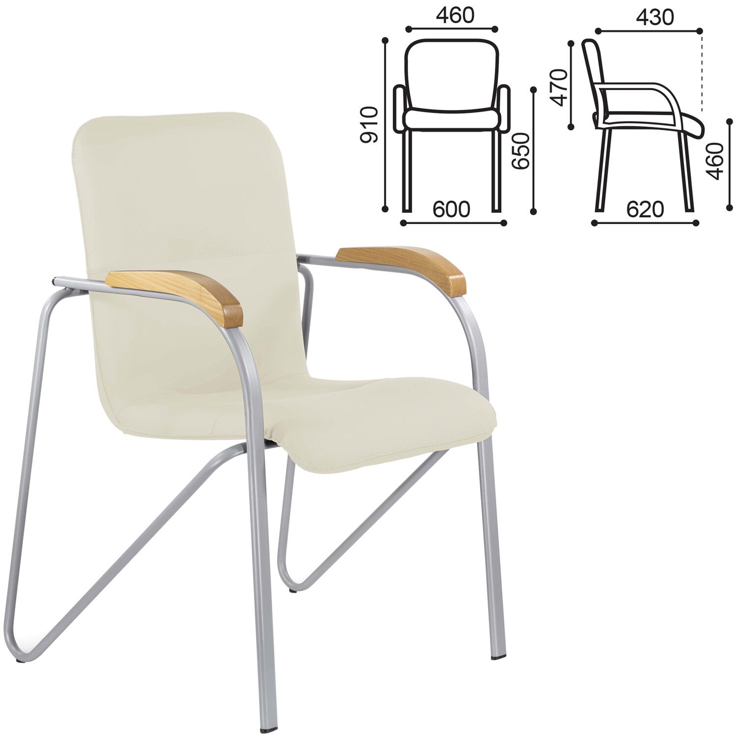 Кресло BRABIX "Samba CF-104", серый каркас, накладки "бук", кожзам бежевый, собрано, 532760