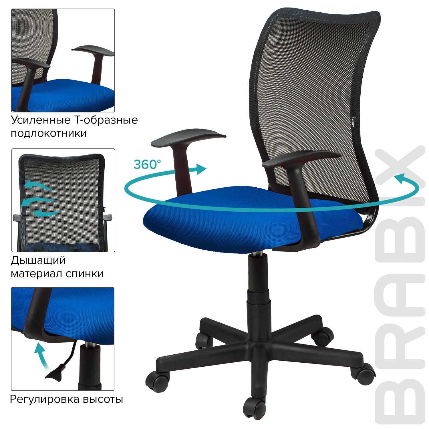 Кресло BRABIX "Wings MG-309", пластик черный, сетка, черное/синее, 532013
