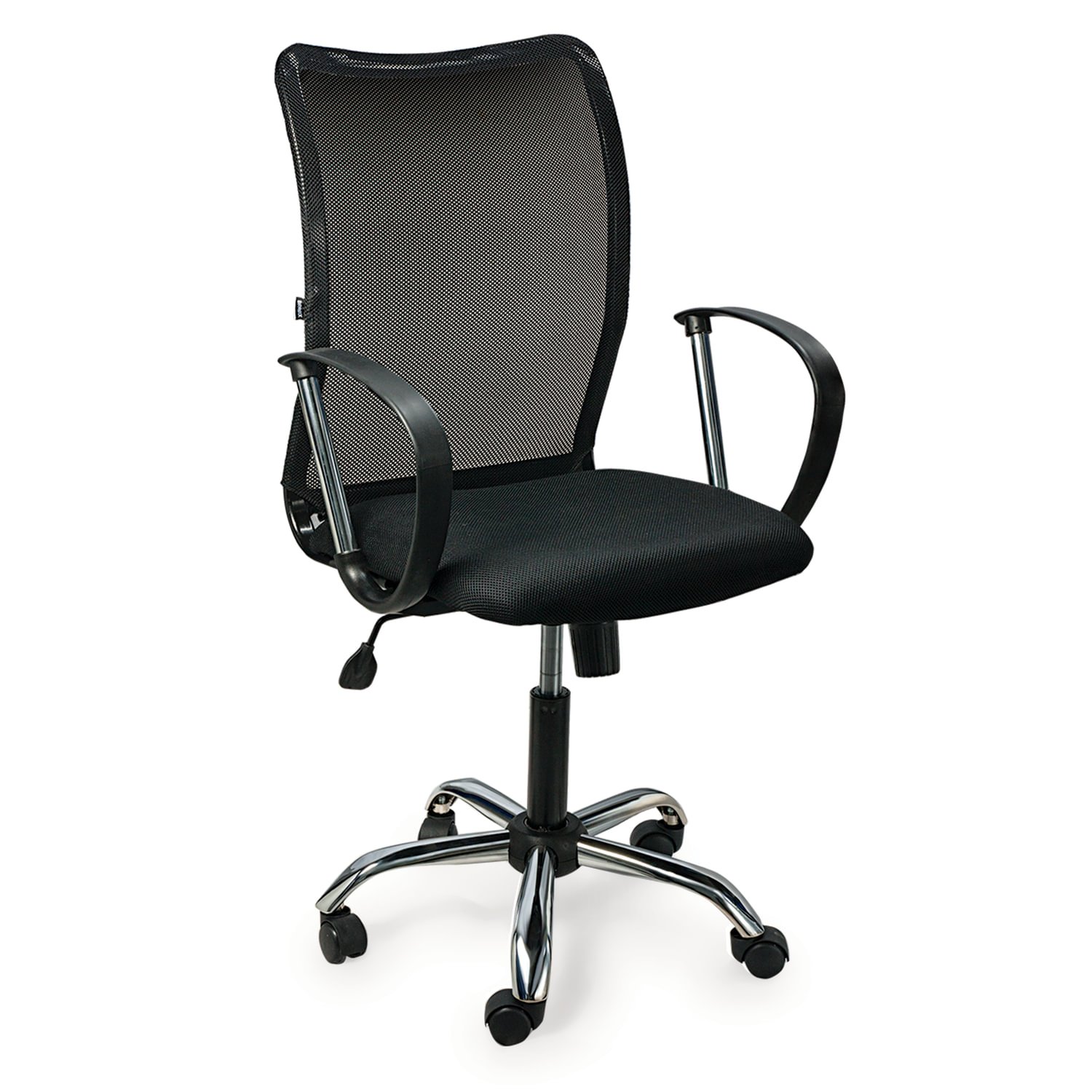 Кресло МЕТТА "SU-C-8-Т" хром, с подлокотниками, ткань-сетка, сиденье мягкое, черное