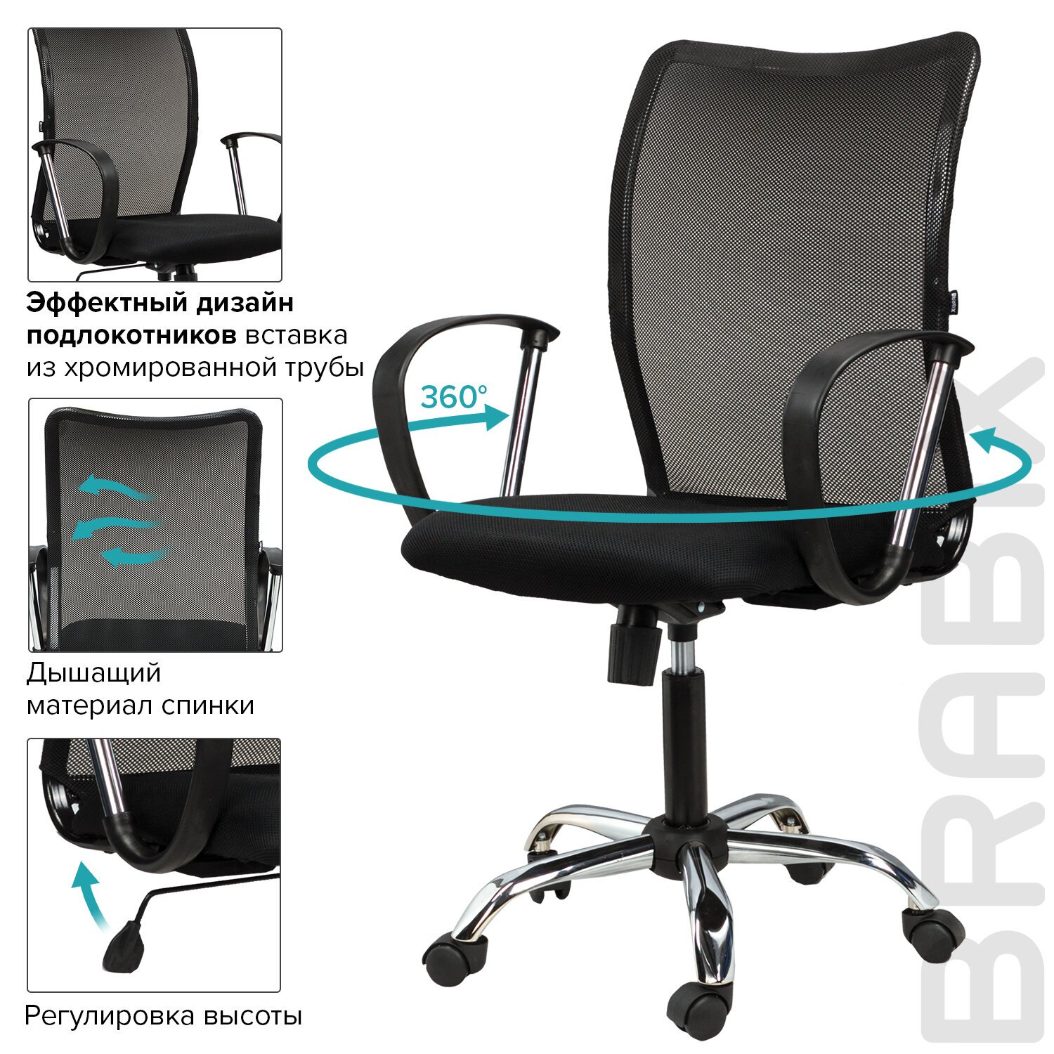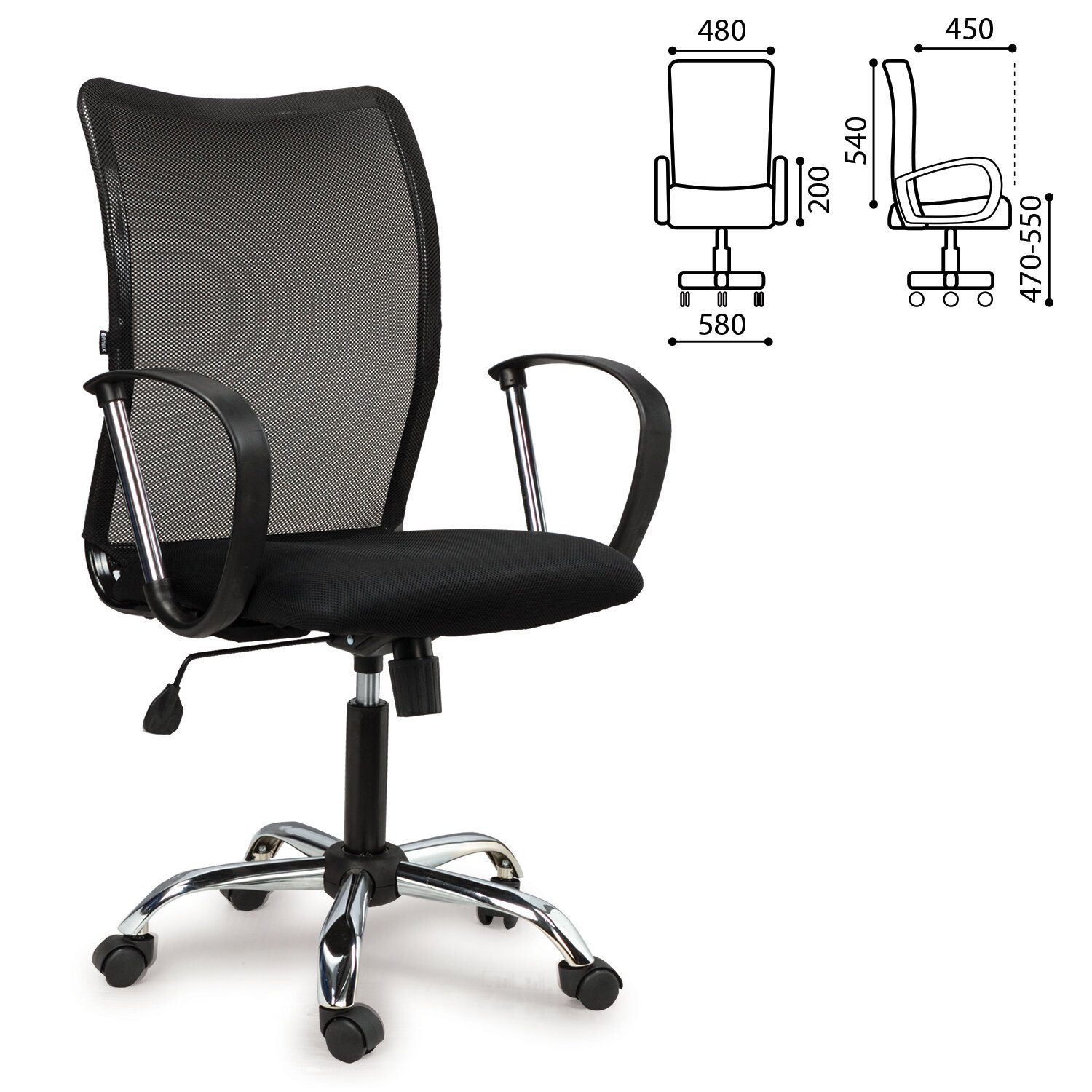 Кресло BRABIX "Wings MG-304", пластик черный, хром, сетка, черное, 532016