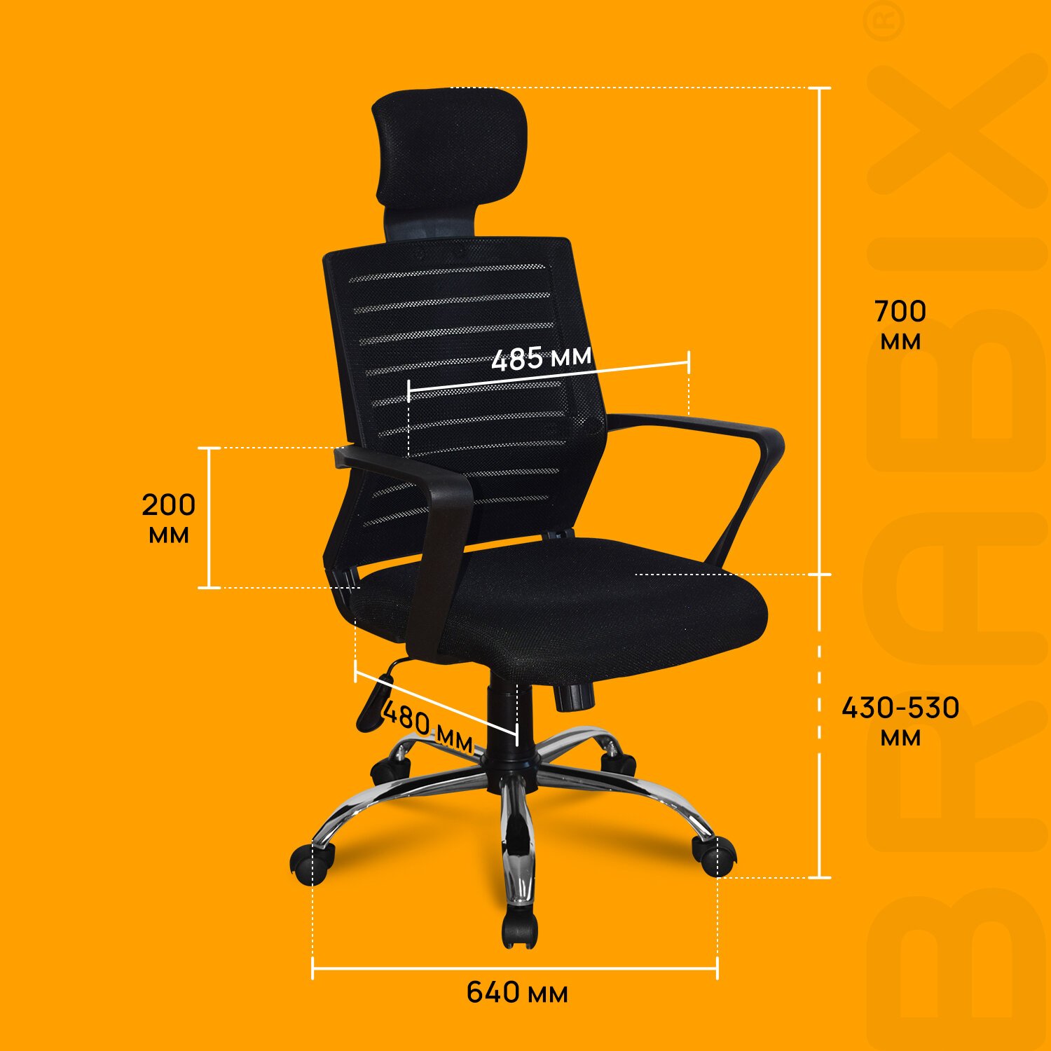 Кресло BRABIX "Victory MG-016", подголовник, хром, черное, 531924