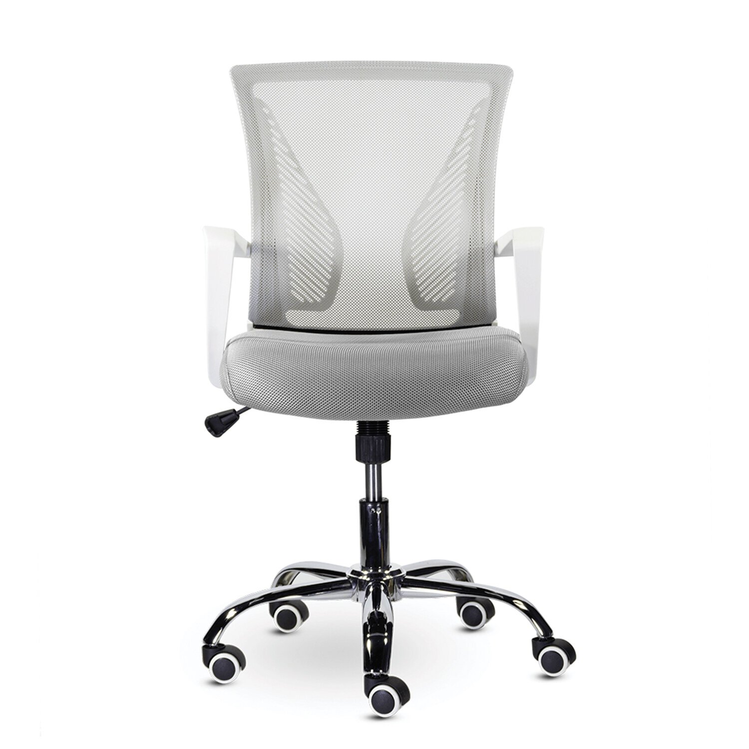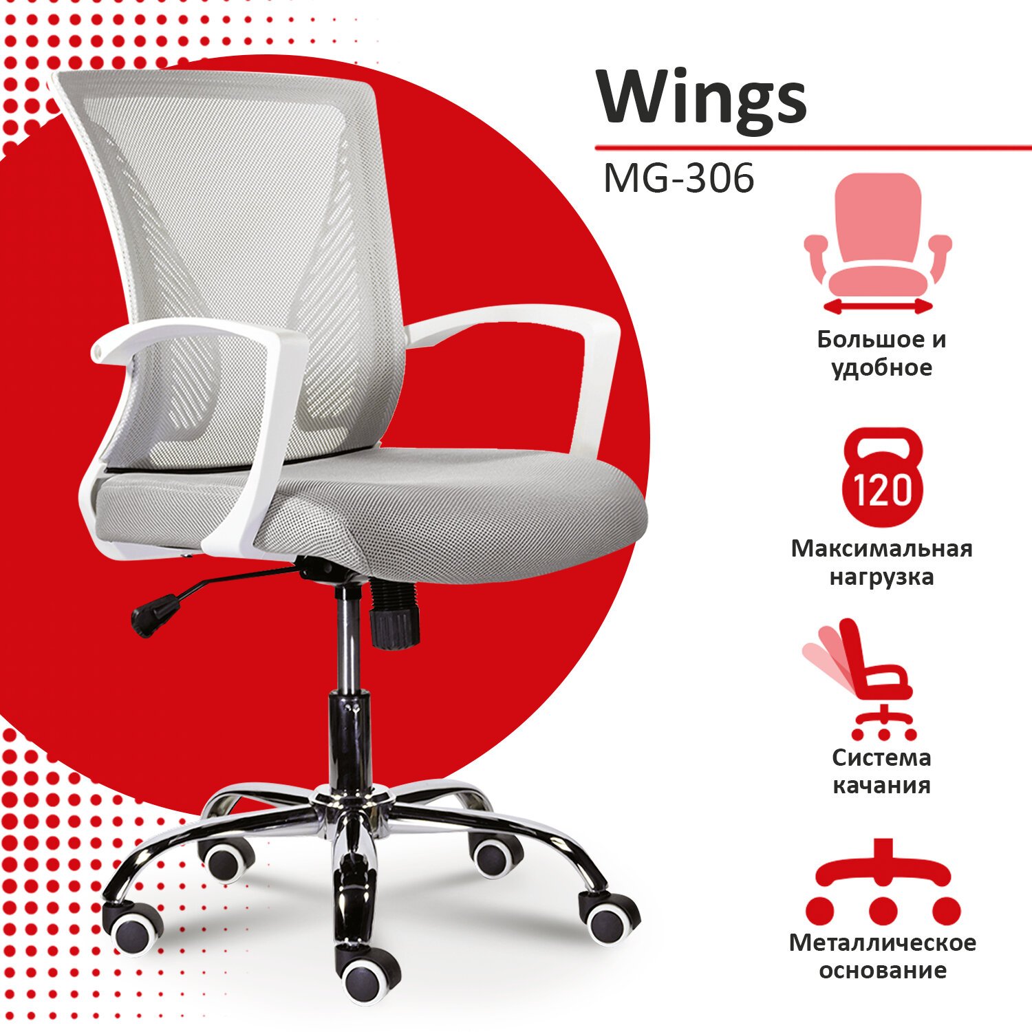 Кресло BRABIX "Wings MG-306", пластик белый, хром, сетка, серое, 532012
