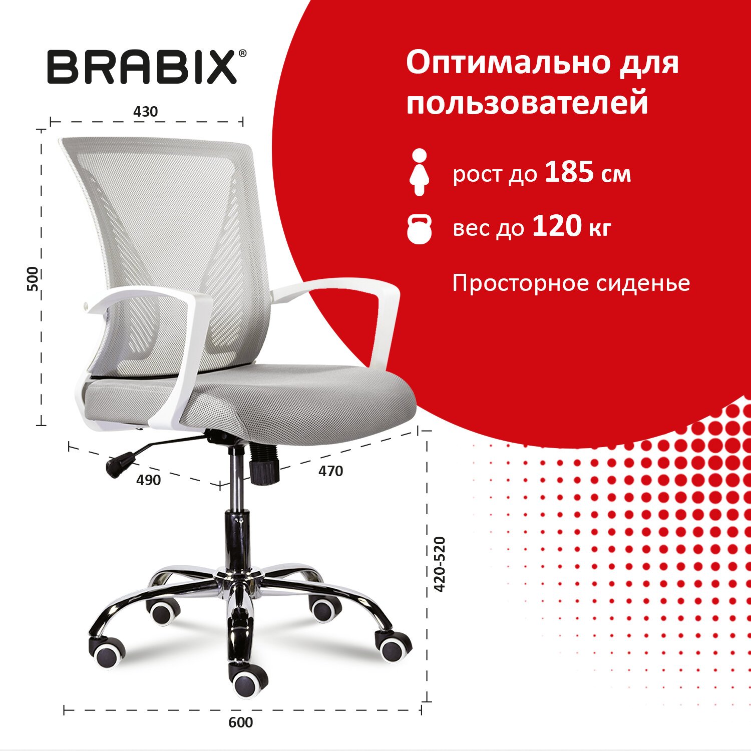 Современное, доступное и удобное кресло с сетчатой спинкой Brabix "Wings" выделяется среди огромного количества аналогов, представленных на рынке