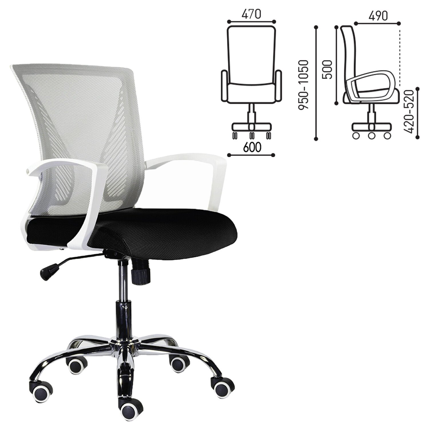 Кресло BRABIX "Wings MG-306", пластик белый, хром, сетка, серое/черное, 532010