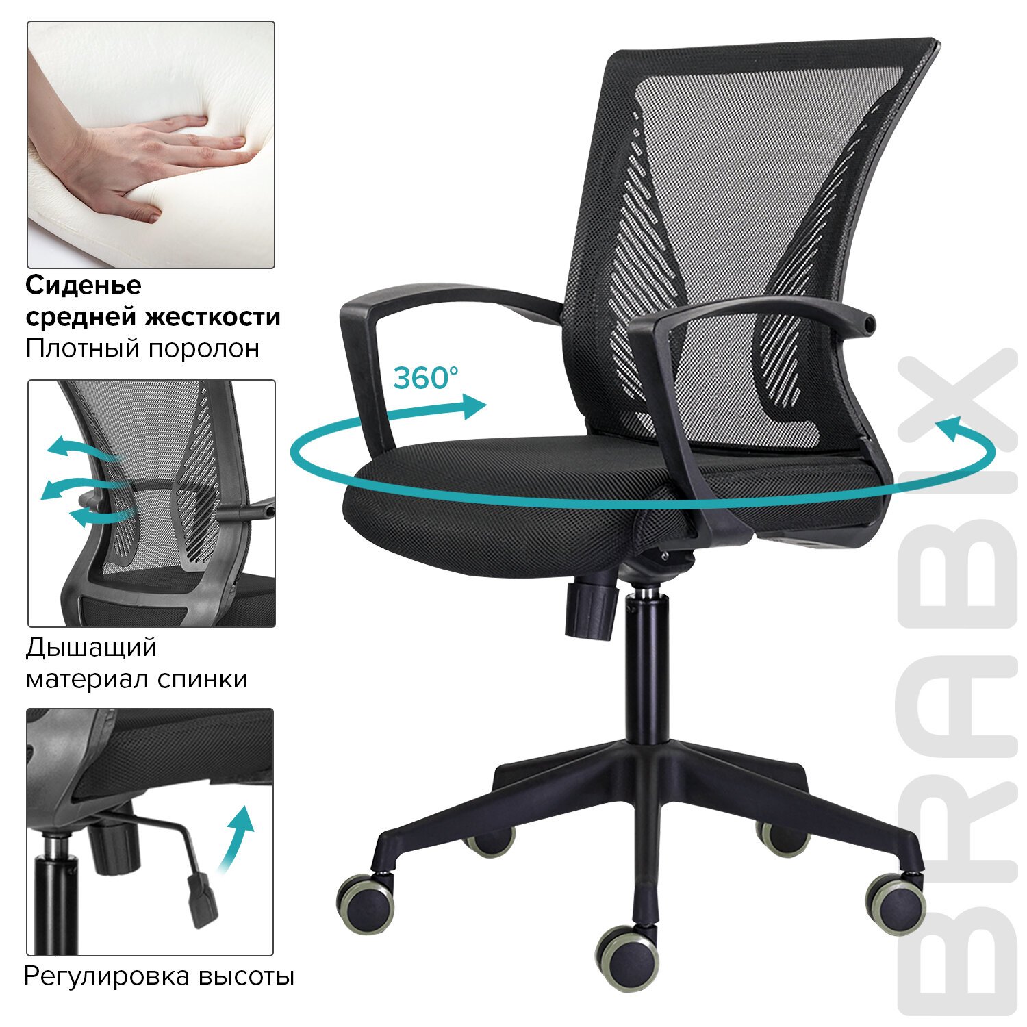 Кресло BRABIX "Fly MG-396", с подлокотниками, сетка, черное, 532083