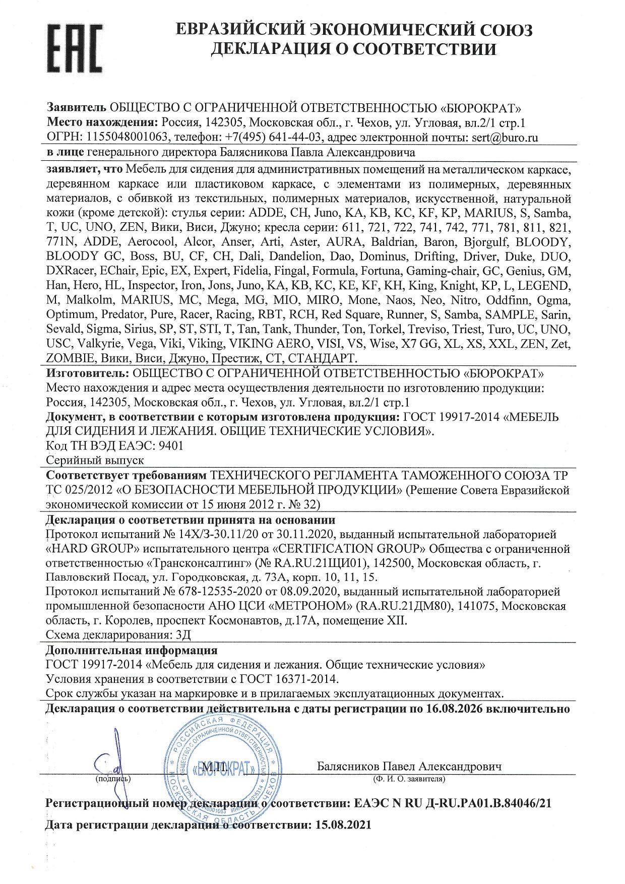 | Тип механизма | "Up&Down" - регулировка высоты кресла |