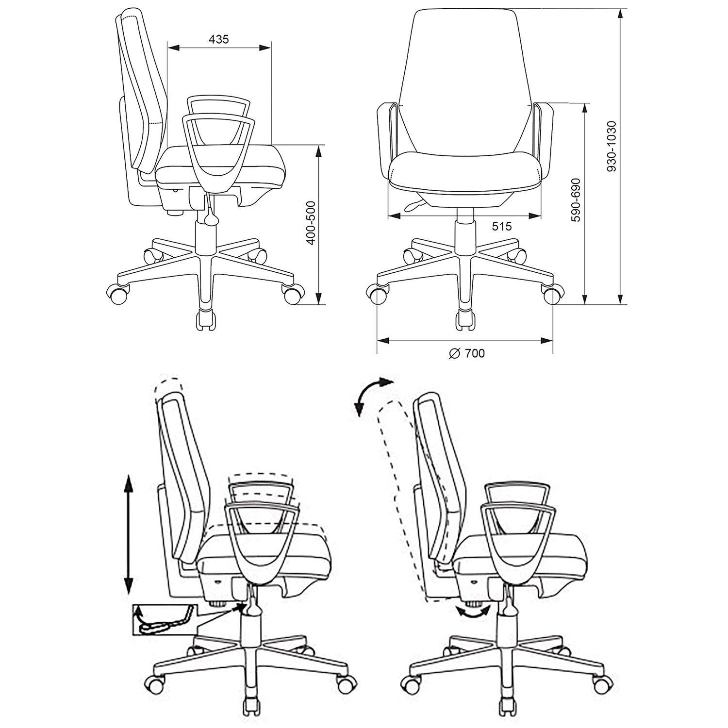 Модель оснащена механизмом регулировки высоты кресла и пружинно-винтовым механизмом качания спинки без фиксации.