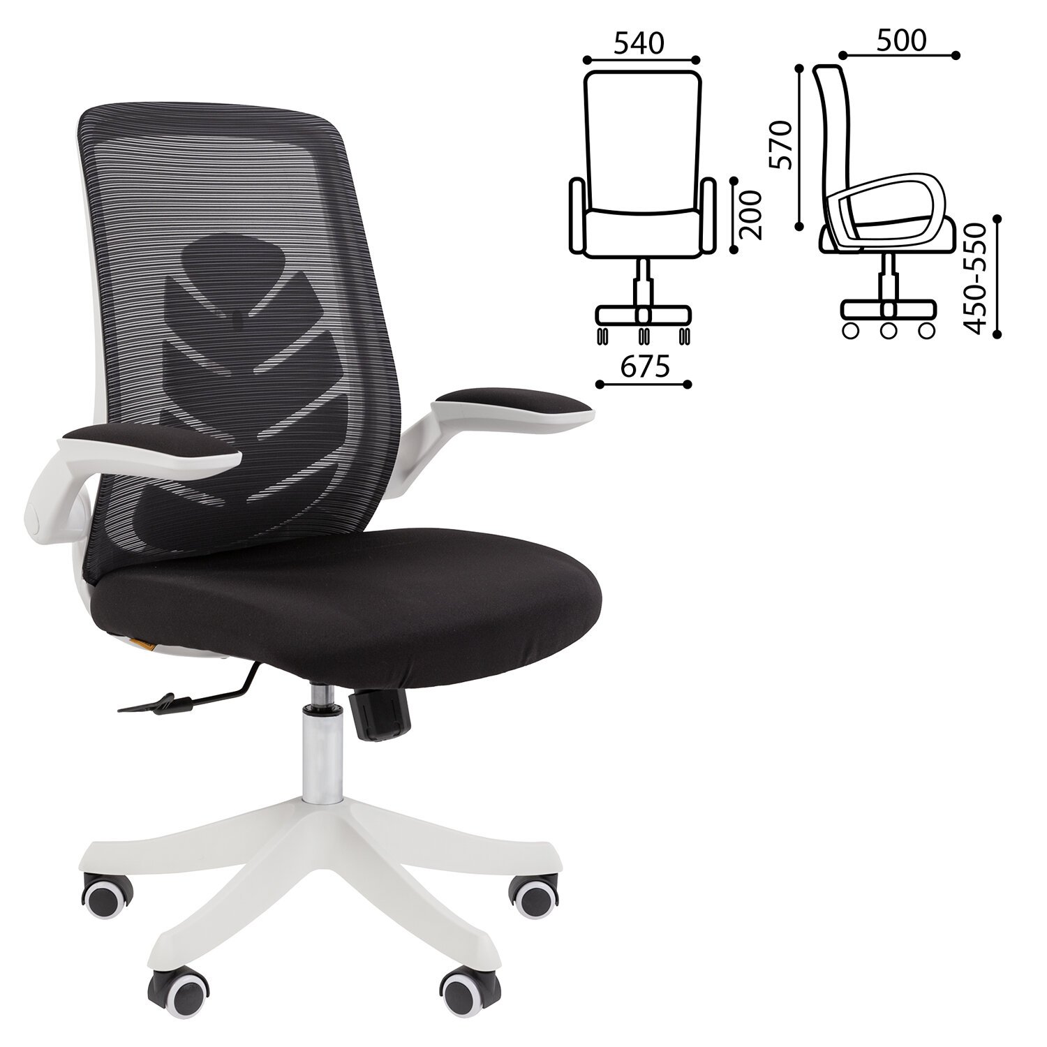 Кресло Chairman CH 565, откидные подлокотники, синхромеханизм, пластик белый, сетка/ткань, черное, 7146048