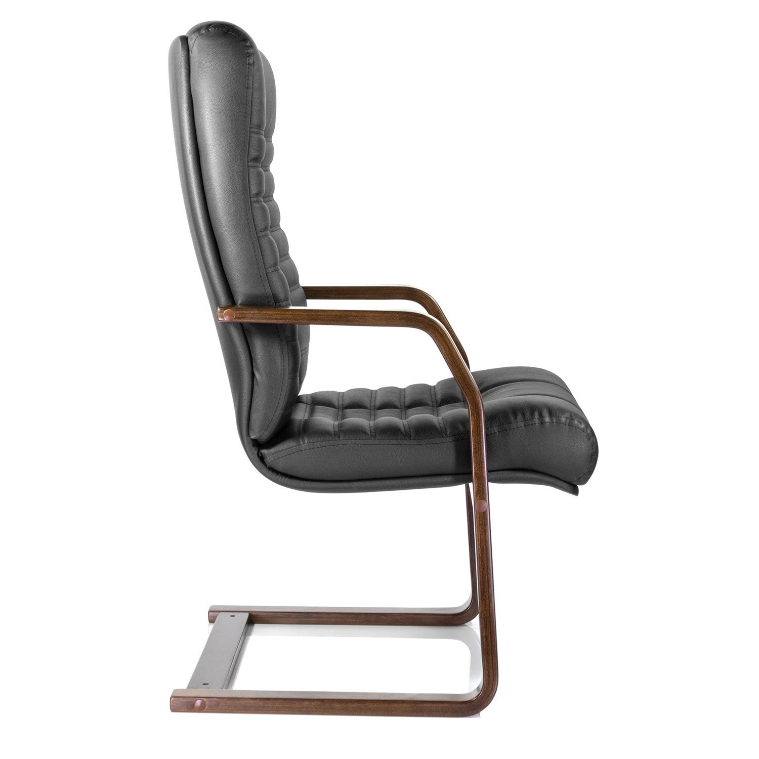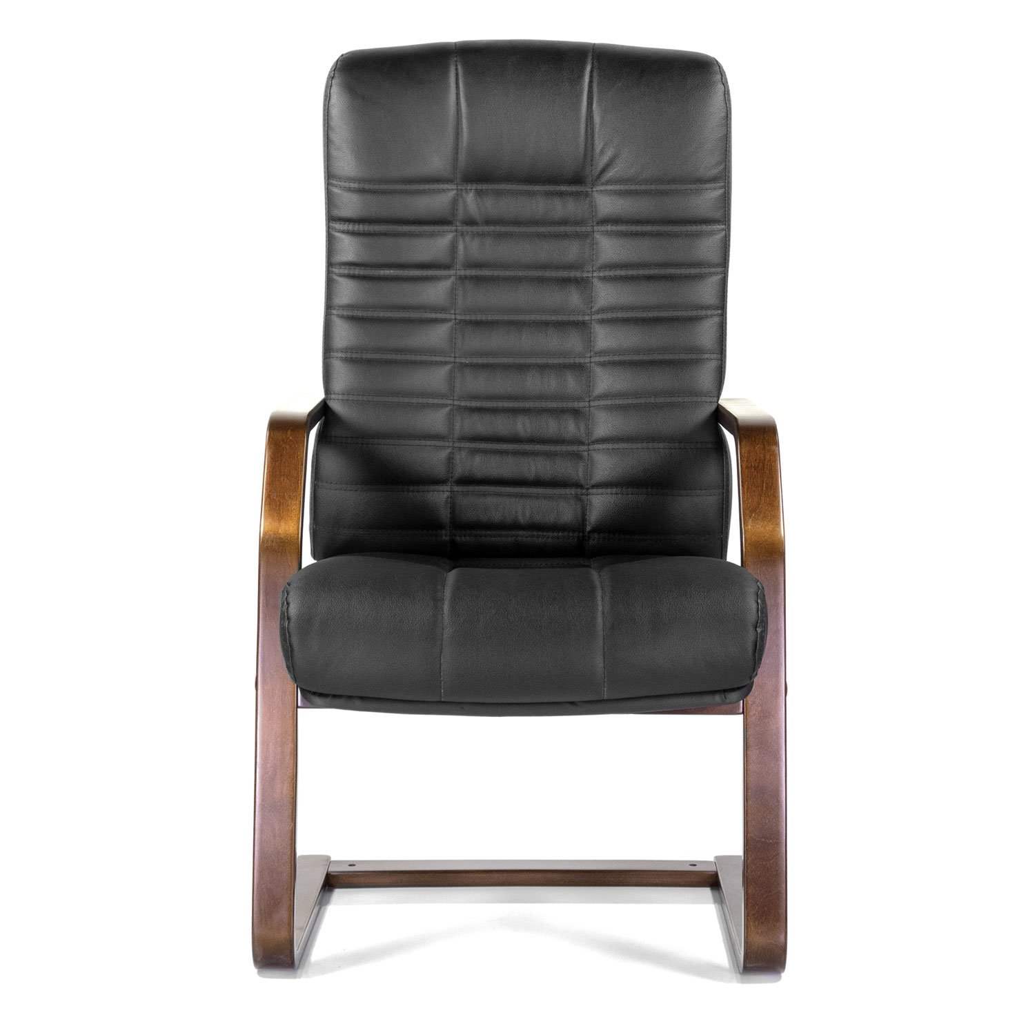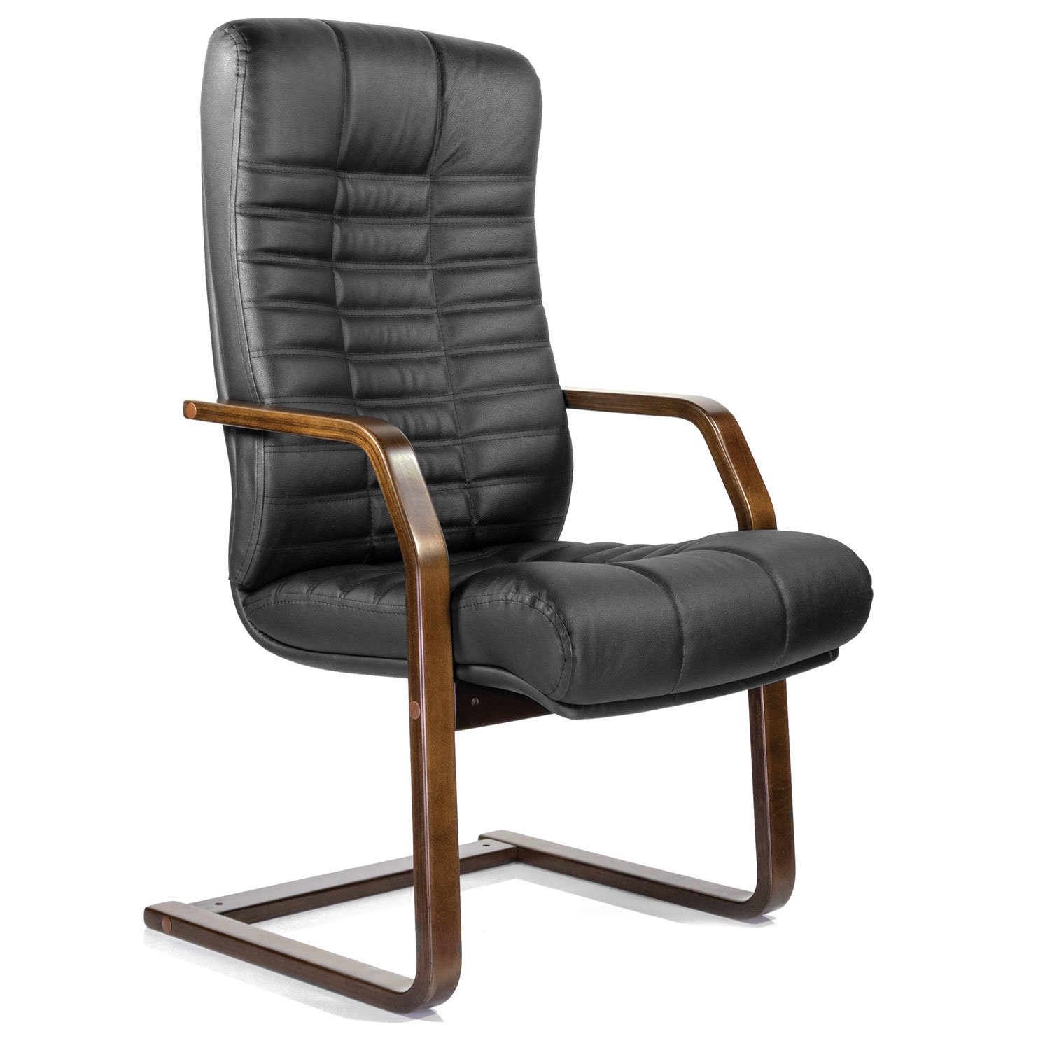 Кресло для приемных и переговорных "Атлант-экстра", кожа, дерево (орех), черное