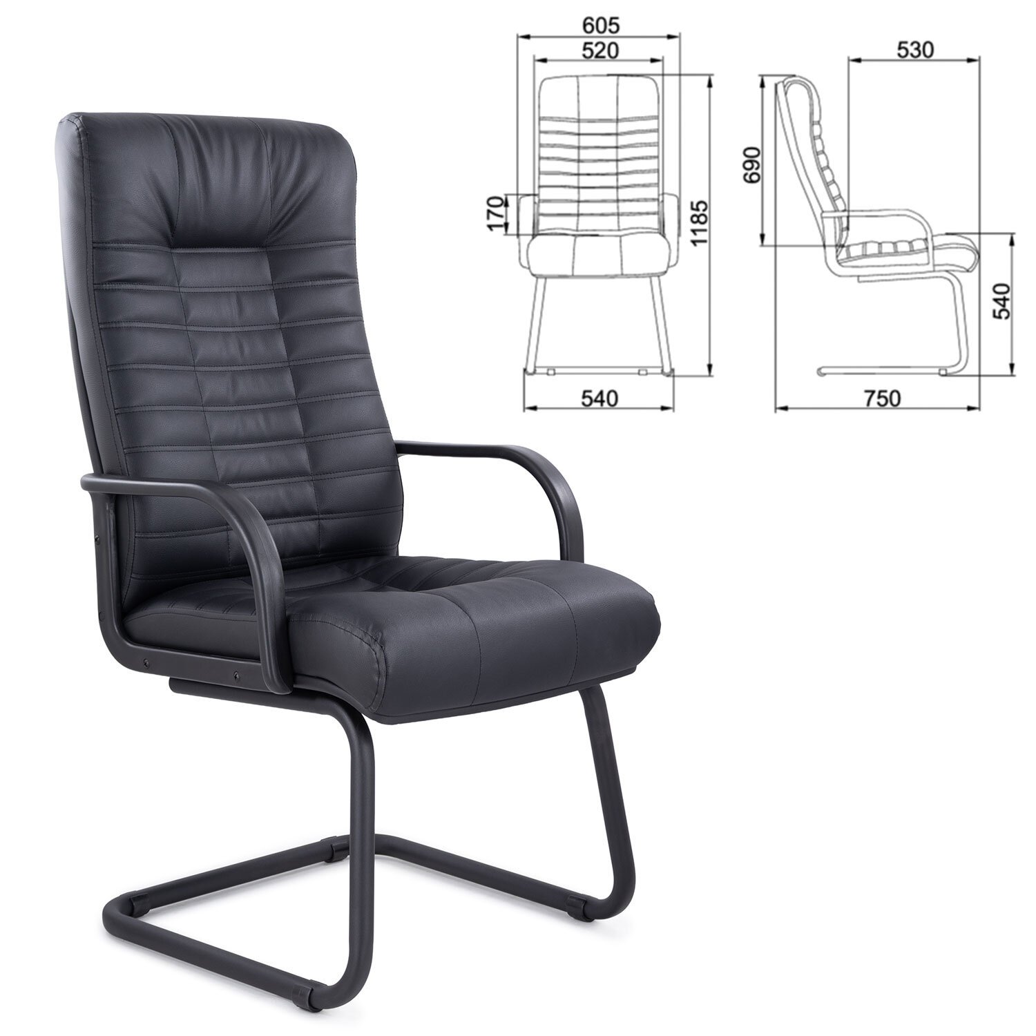 Кресло для приемных и переговорных "Атлант", кожа, черное