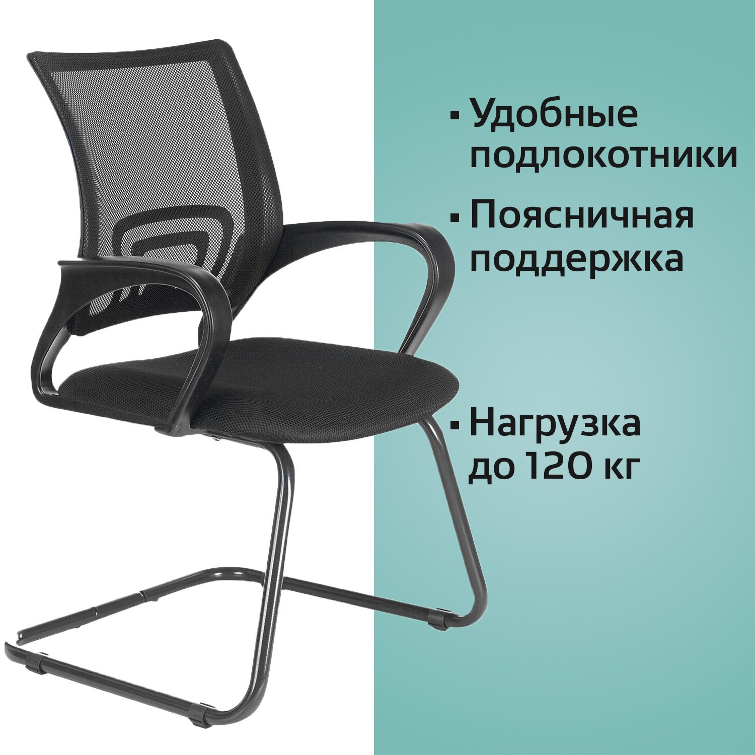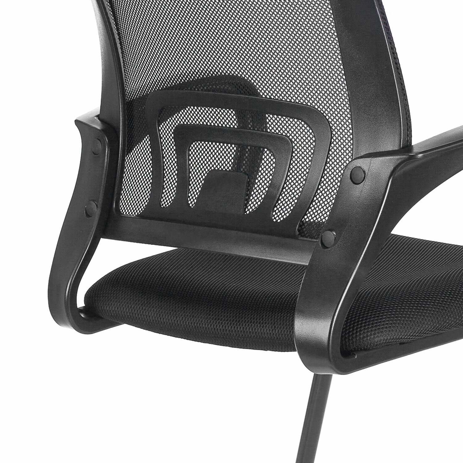 Спинка выполнена из прочного материала - акриловой сетки и имеет выраженную поясничную поддержку, обеспечивающую комфортную посадку в течение всего рабочего дня.
