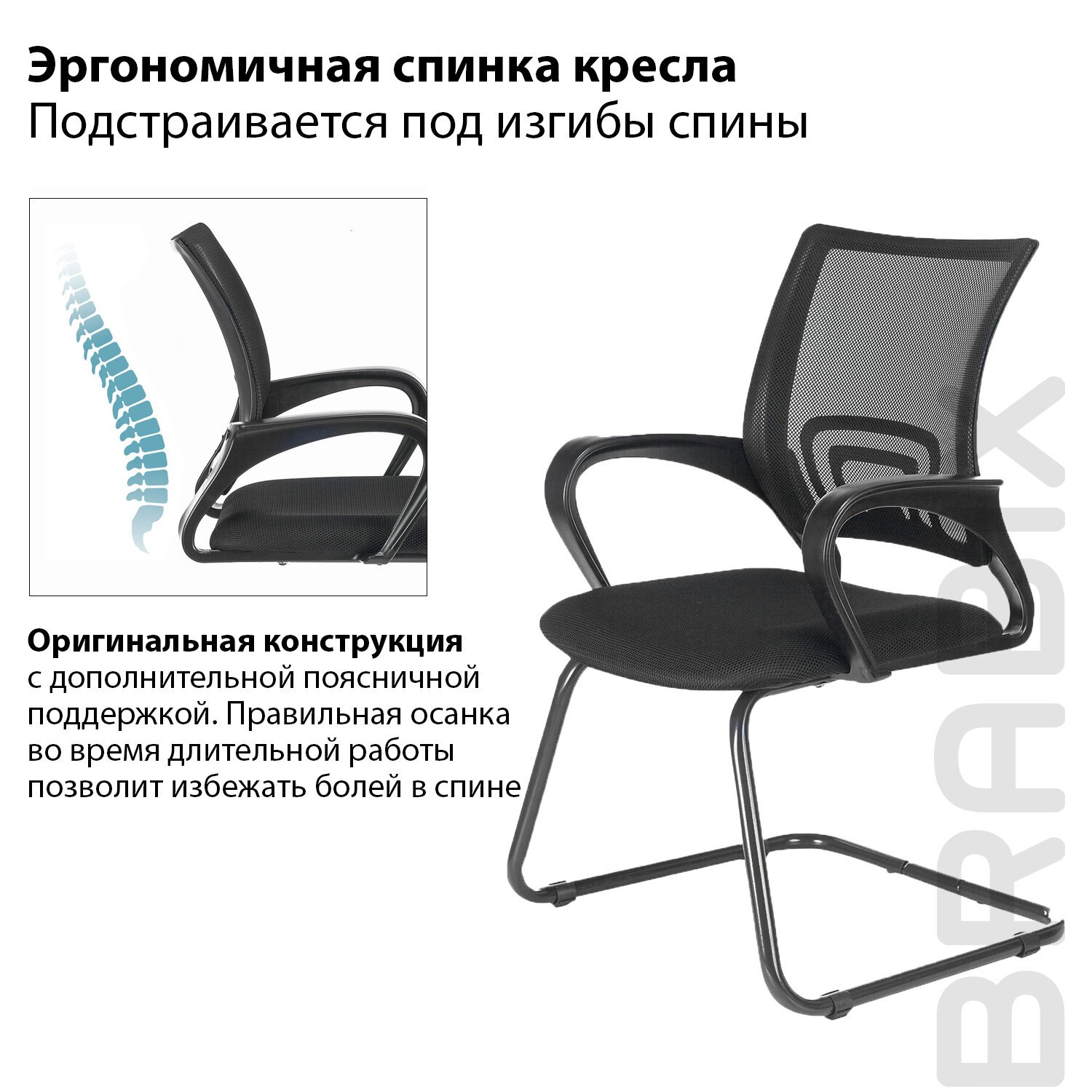 BRABIX "Fly CF-100" - доступное, качественное кресло с эргономичной сетчатой спинкой. Бюджетный вариант многофункционального кресла для оборудования приемных и переговорных.