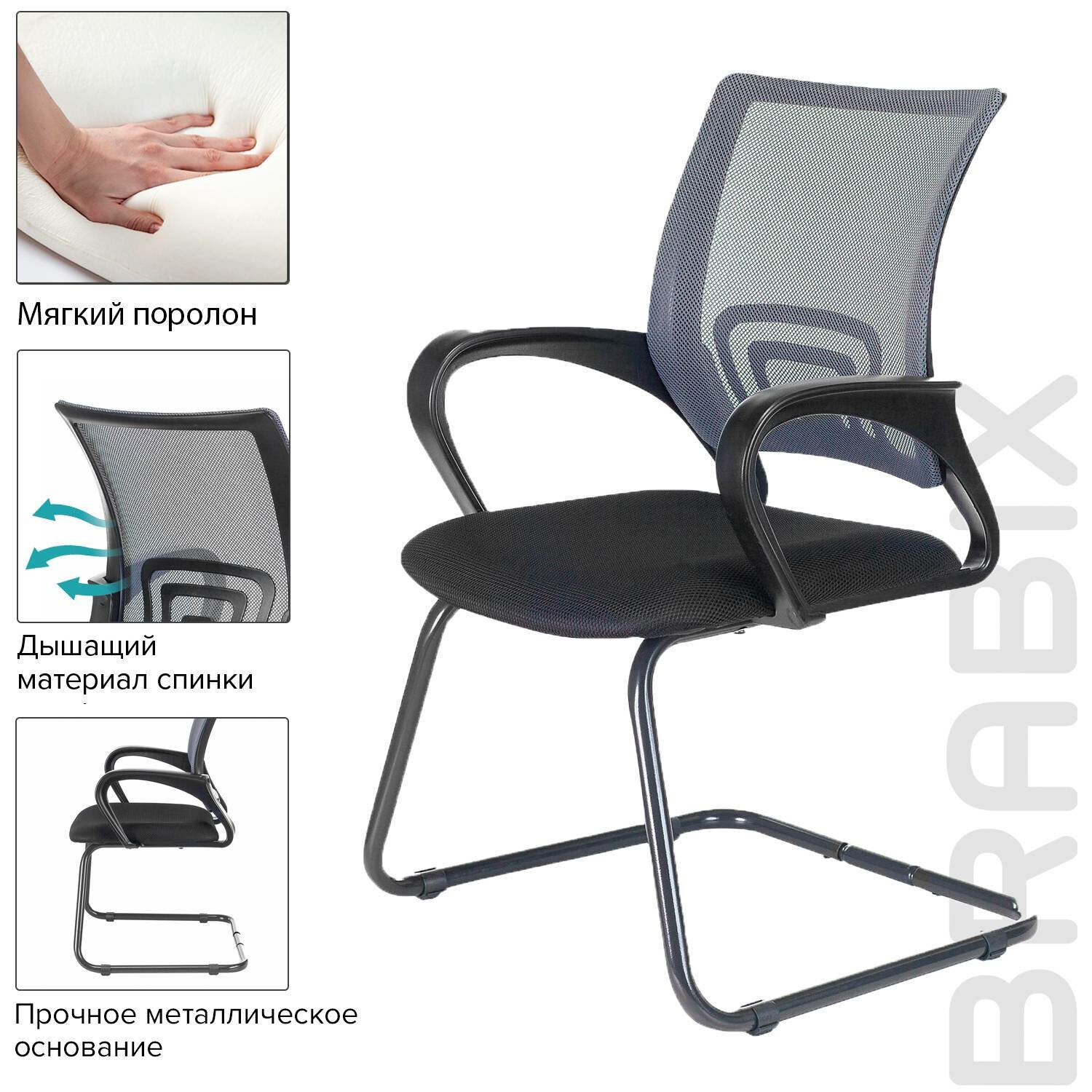 Кресло для приемных и переговорных BRABIX "Fly CF-100", серое/черное, 532089