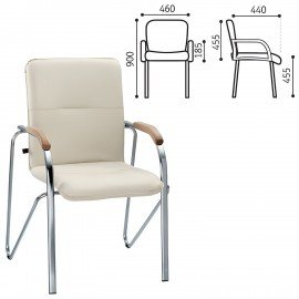 Кресло для приемных и переговорных BRABIX "Kayman CF-102", экокожа, хром, бежевое, 532573