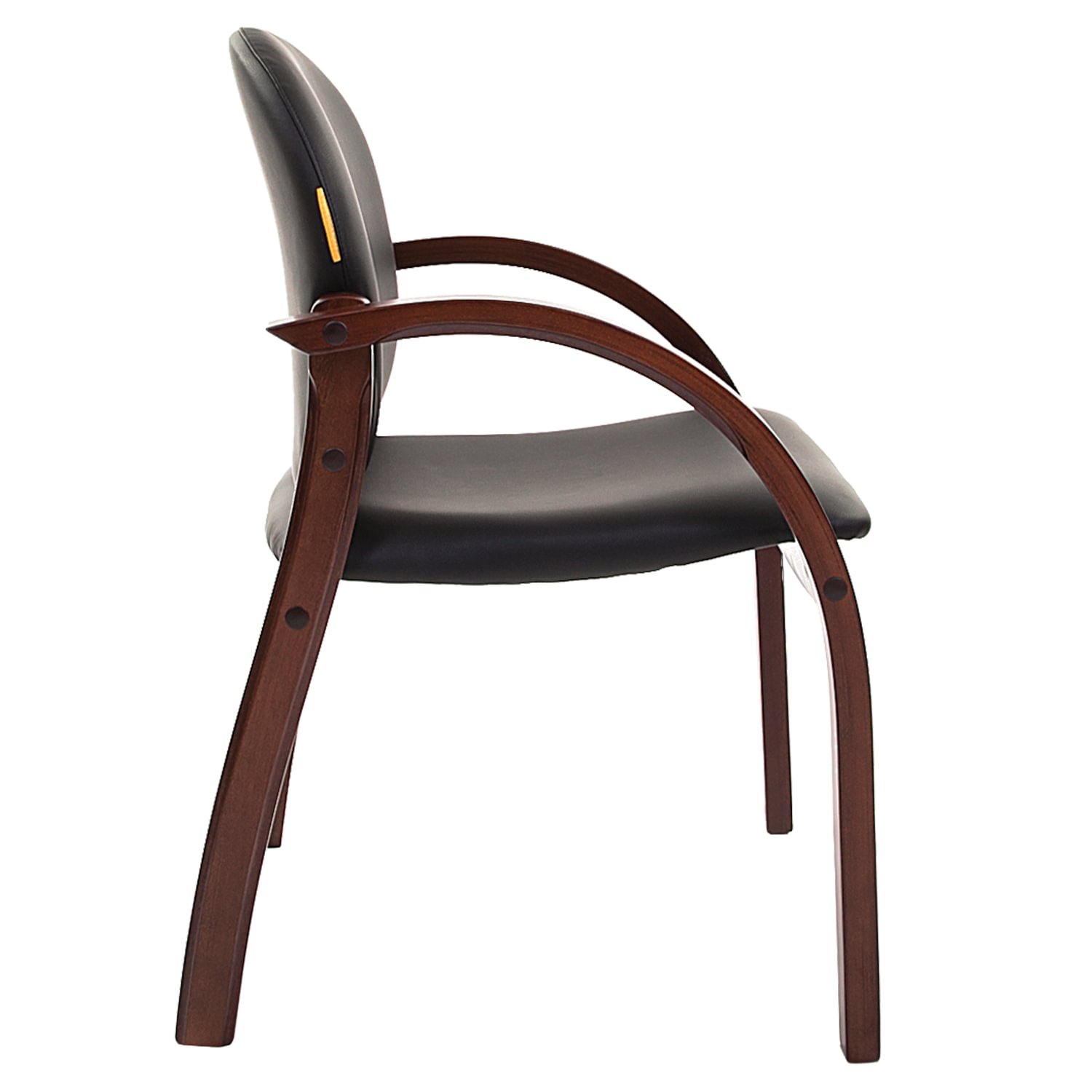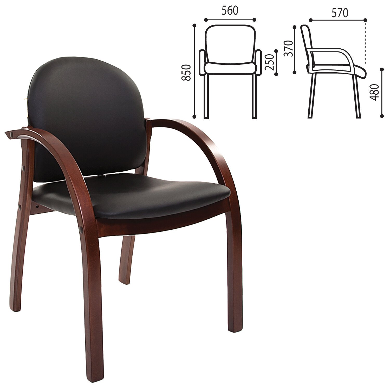 Классическое кресло для приемных и переговорных. Благодаря дизайну, лакированным деревянным элементам и обивке из экокожи класса "премиум" наполнит интерьер комнаты престижем и солидностью.