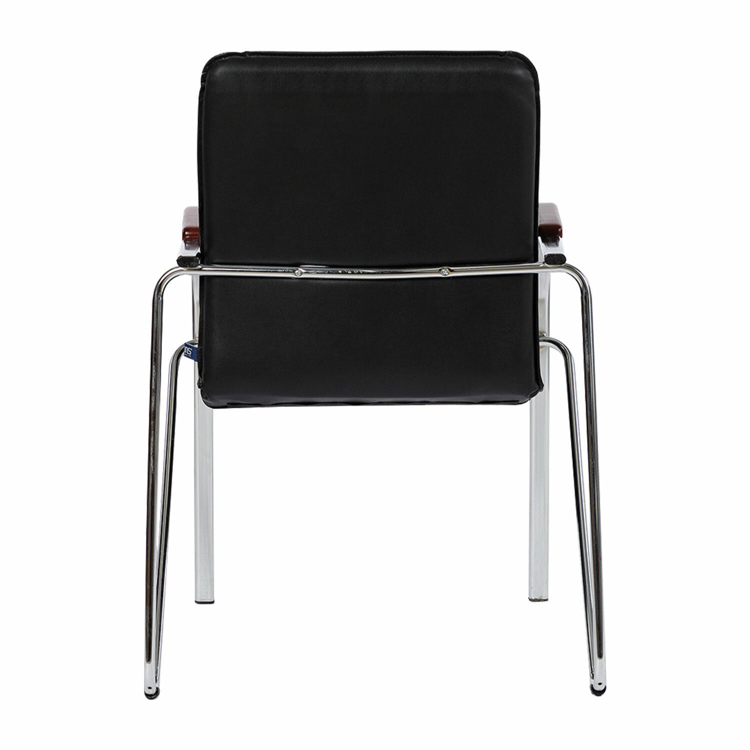 Кресло для приемных и переговорных "Samba", деревянные накладки, хромированный каркас, кожзам черный