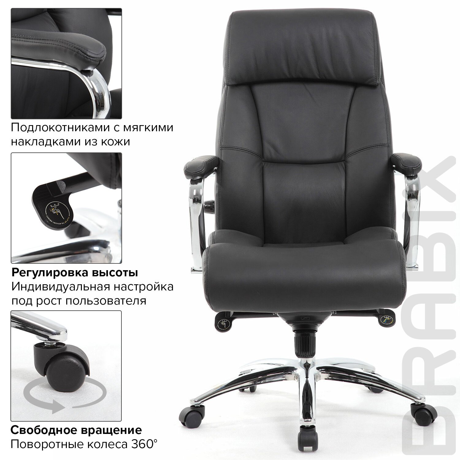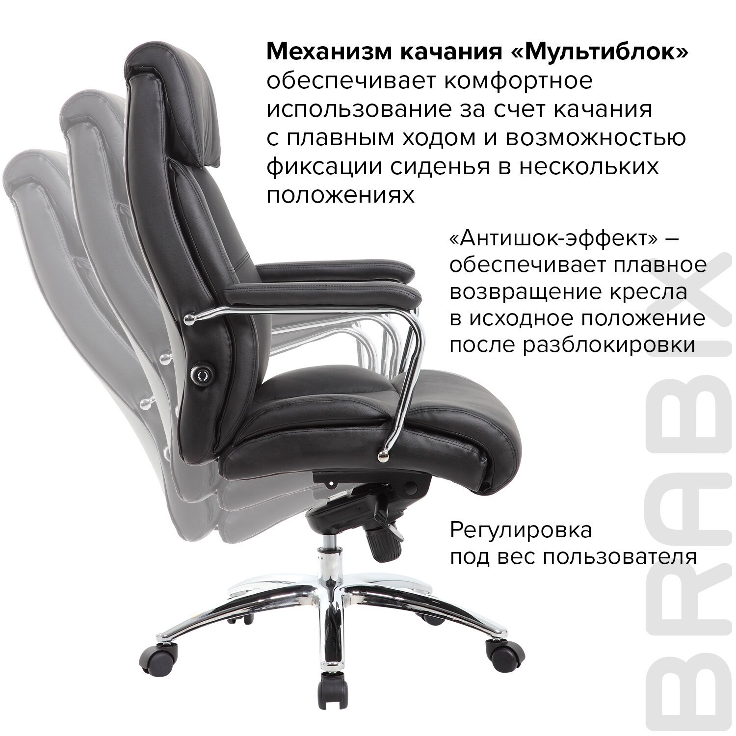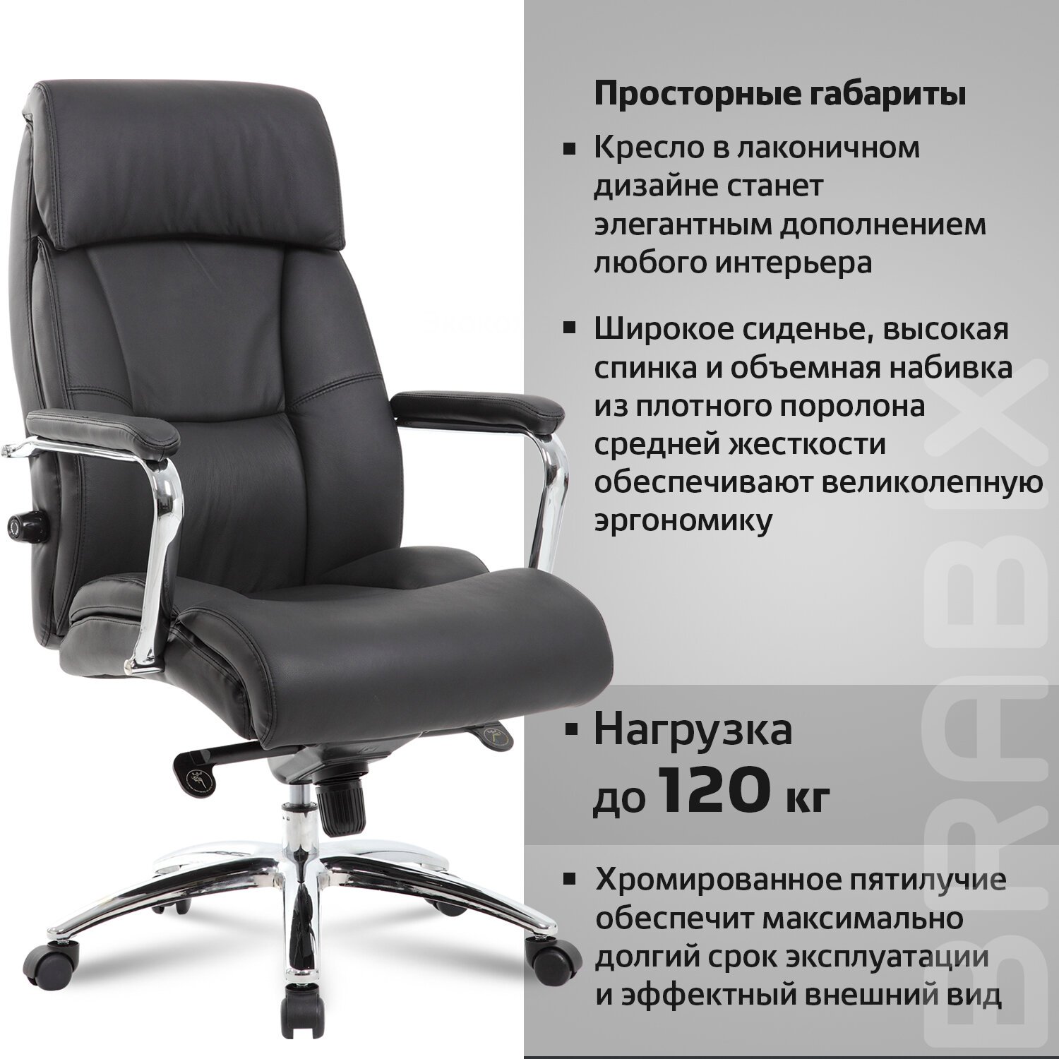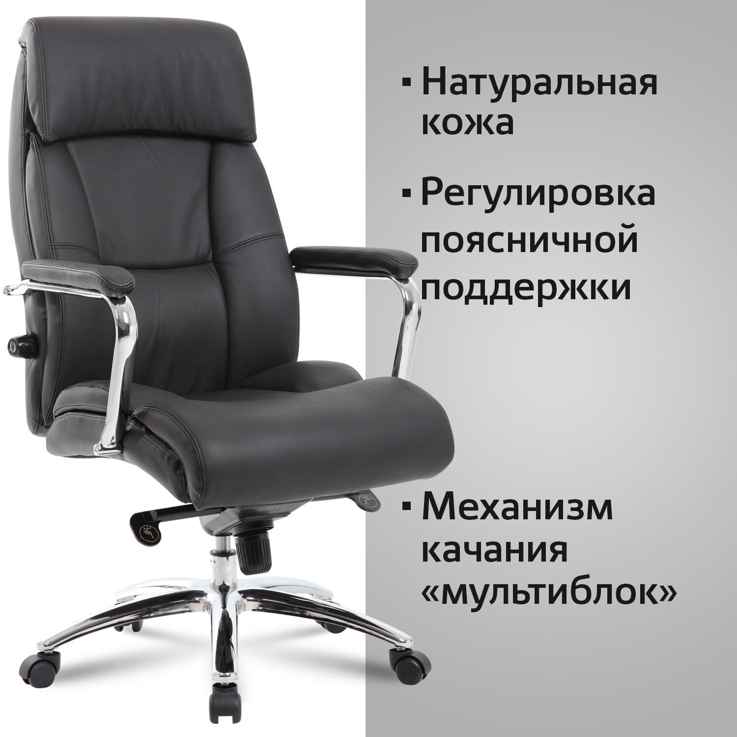 Стильные хромированные элементы, увеличенные размеры сиденья и спинки, а также особый механизм регулировки поддержки поясницы исключают утомление в течение всего рабочего дня.
