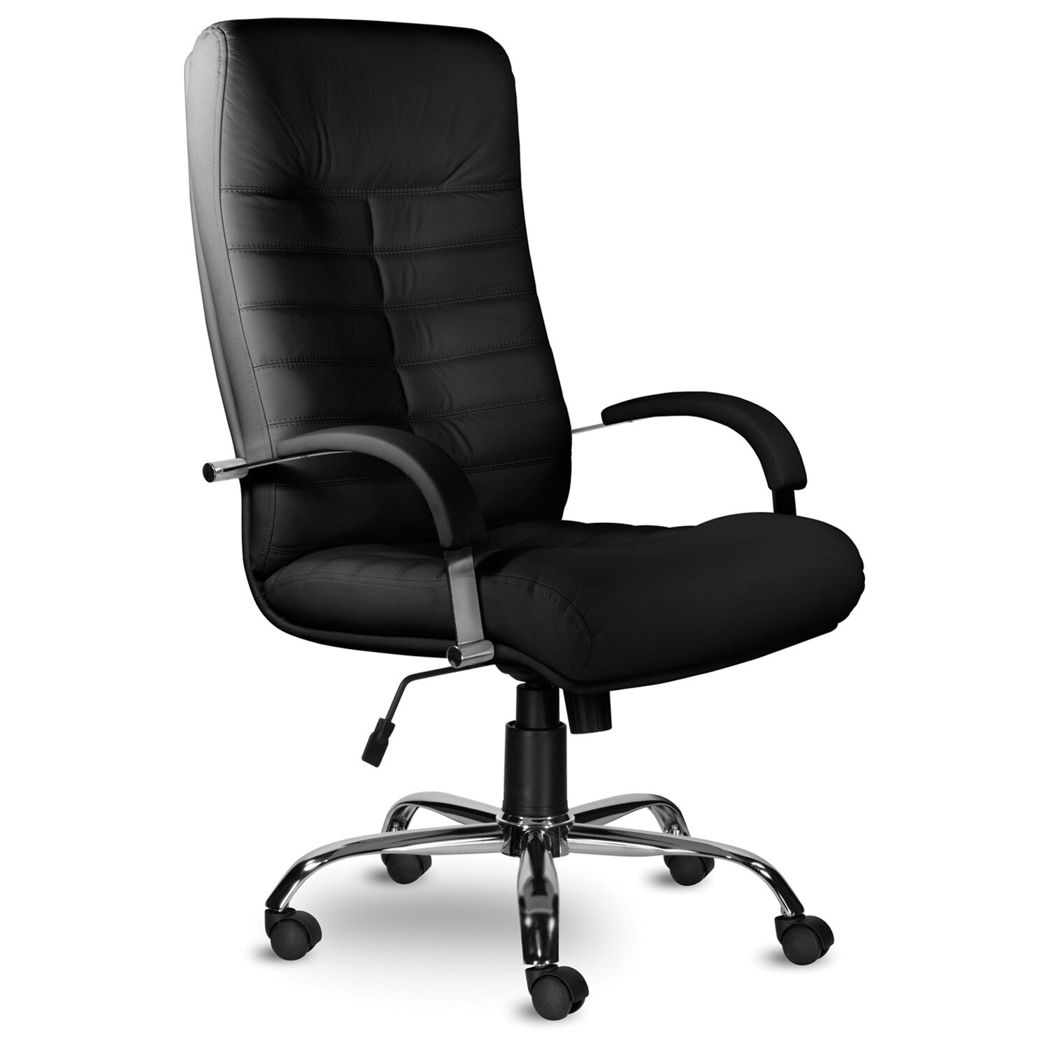 Кресло из натуральной кожи "Орион", хром, монолитный каркас, черное