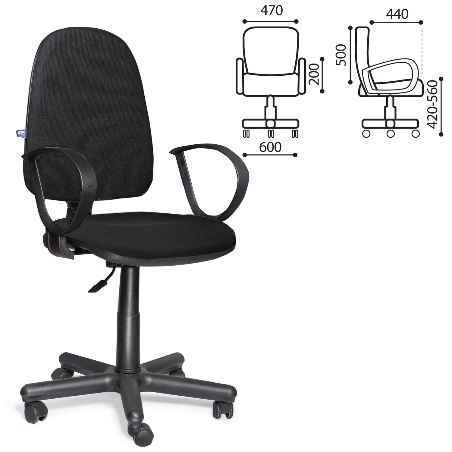Кресло CH-1300N "Престиж+", с подлокотниками, ткань, черное, 1215475