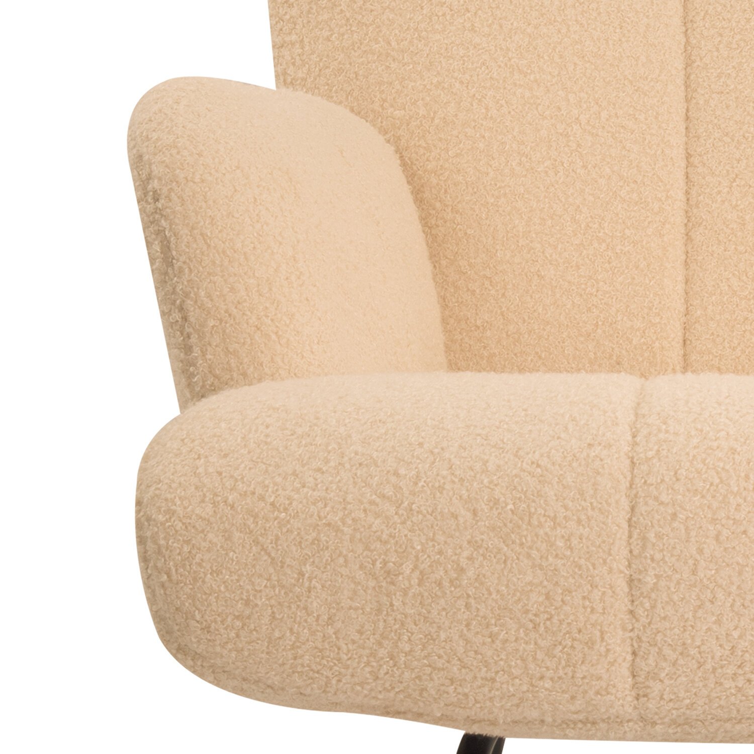 Обивка кресла выполнена из фактурной ткани букле. Она имеет приятные тактильные качества, легко чистится и хорошо пропускает воздух.