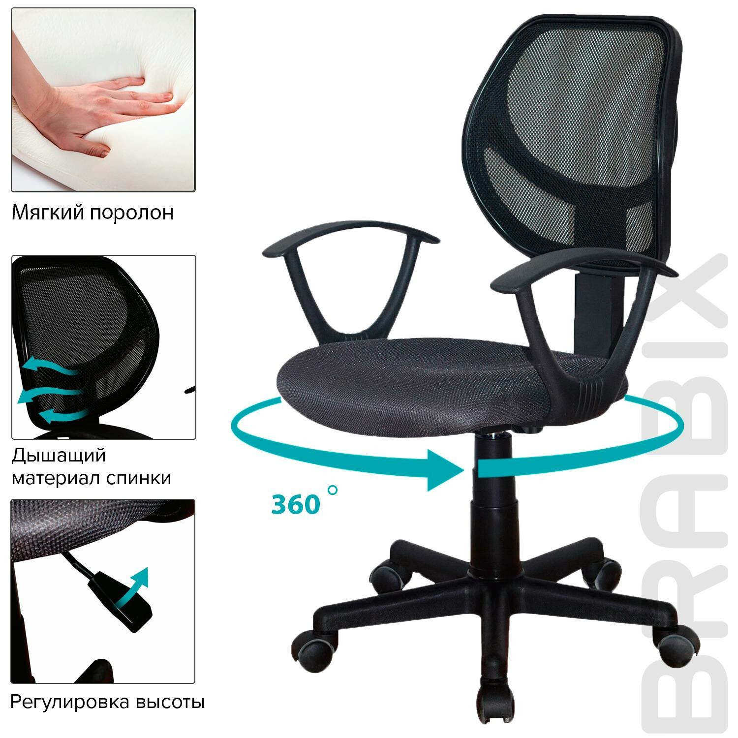 Кресло BRABIX "Fly MG-396", с подлокотниками, сетка, черное, 532083