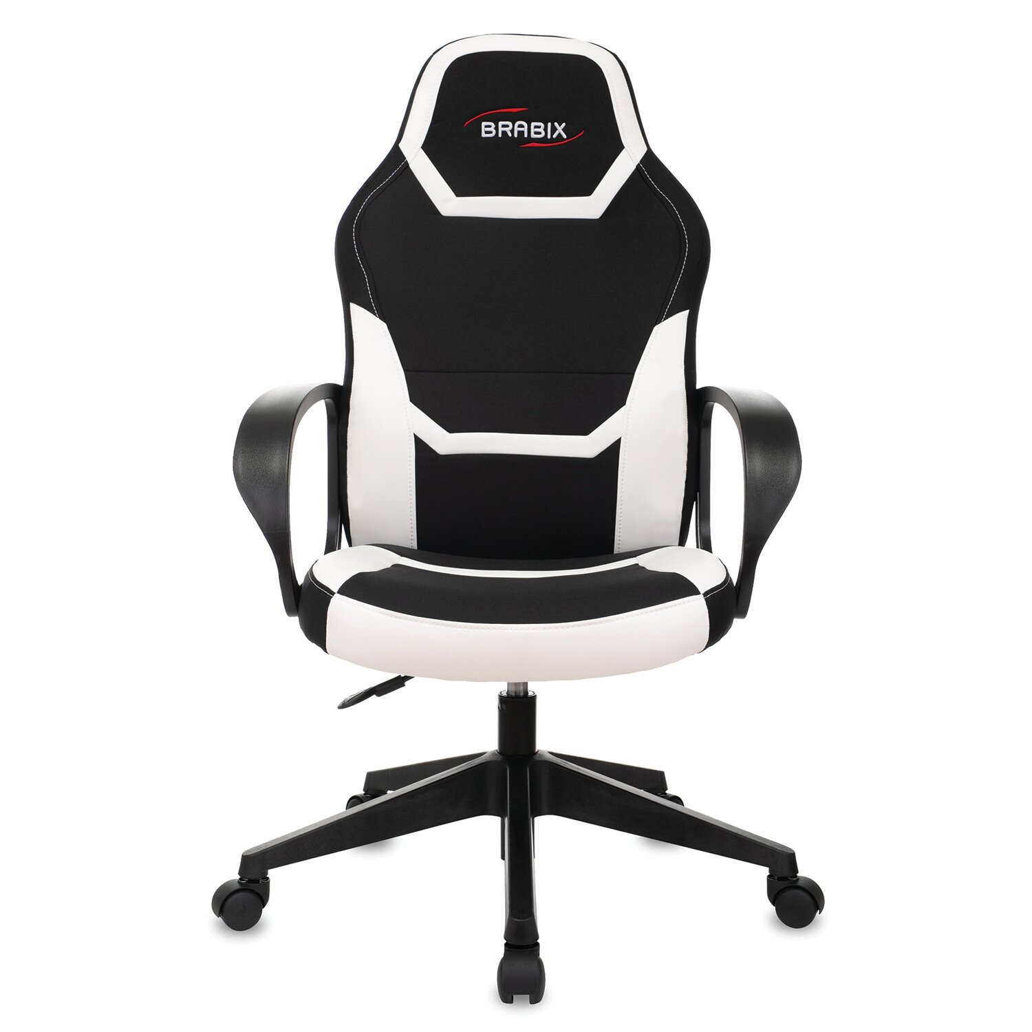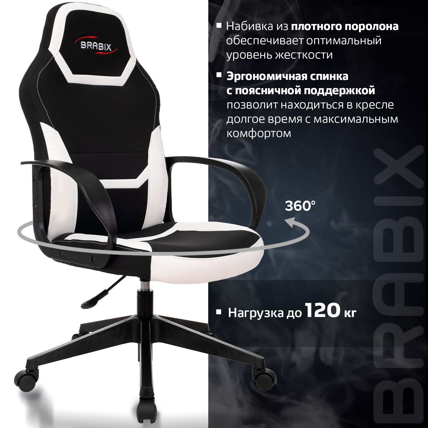 Кресло компьютерное BRABIX "Alpha GM-018", ткань/экокожа, черное/белое, 532640, GM-018_532640