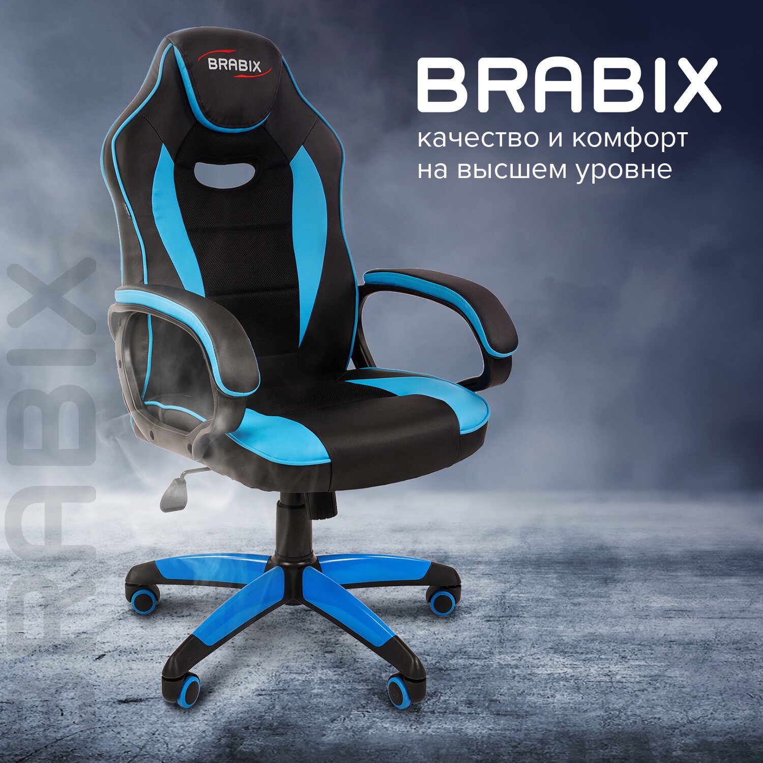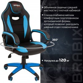 Кресло компьютерное BRABIX "Blaze GM-162", TW/экокожа, черное/голубое, 532578, 7083506