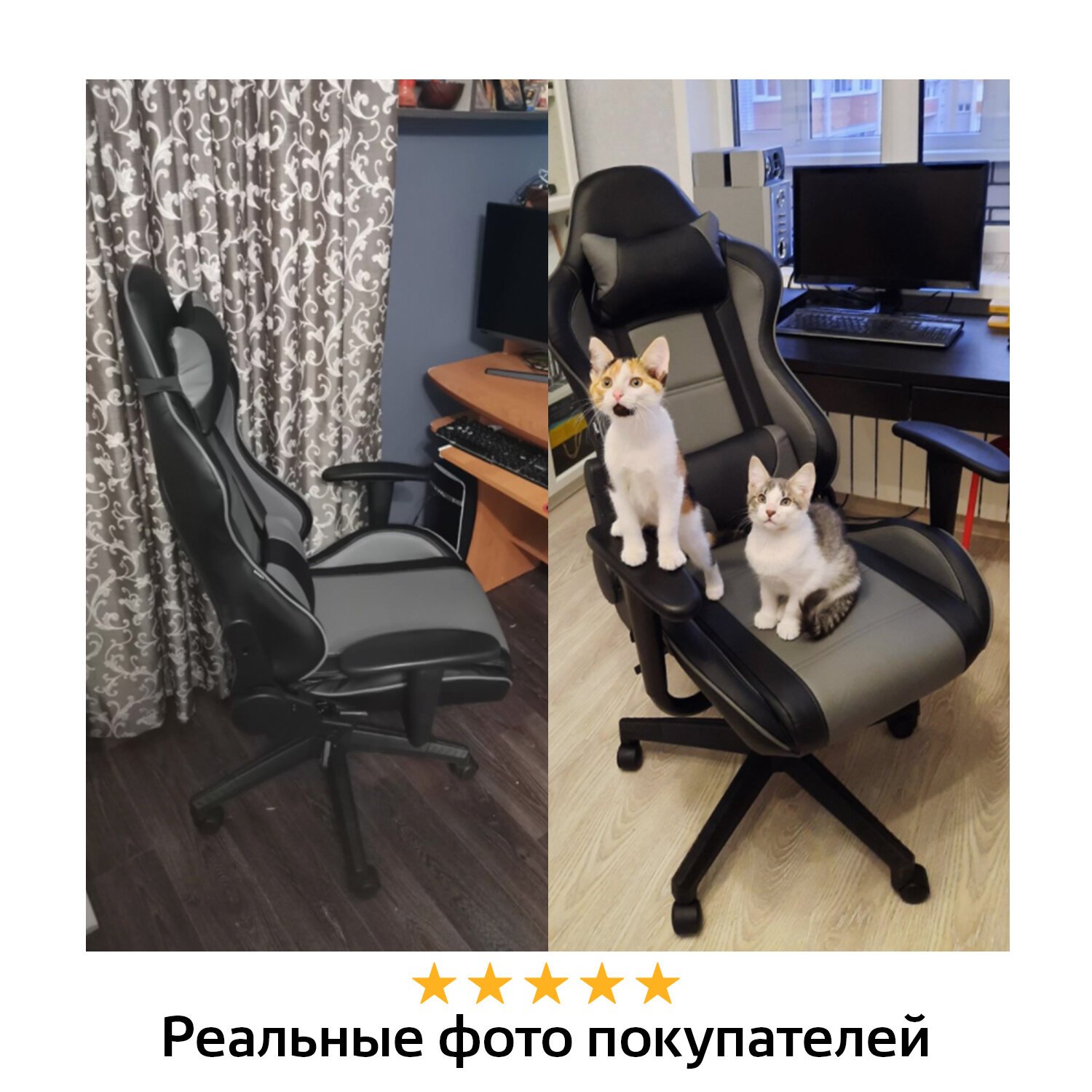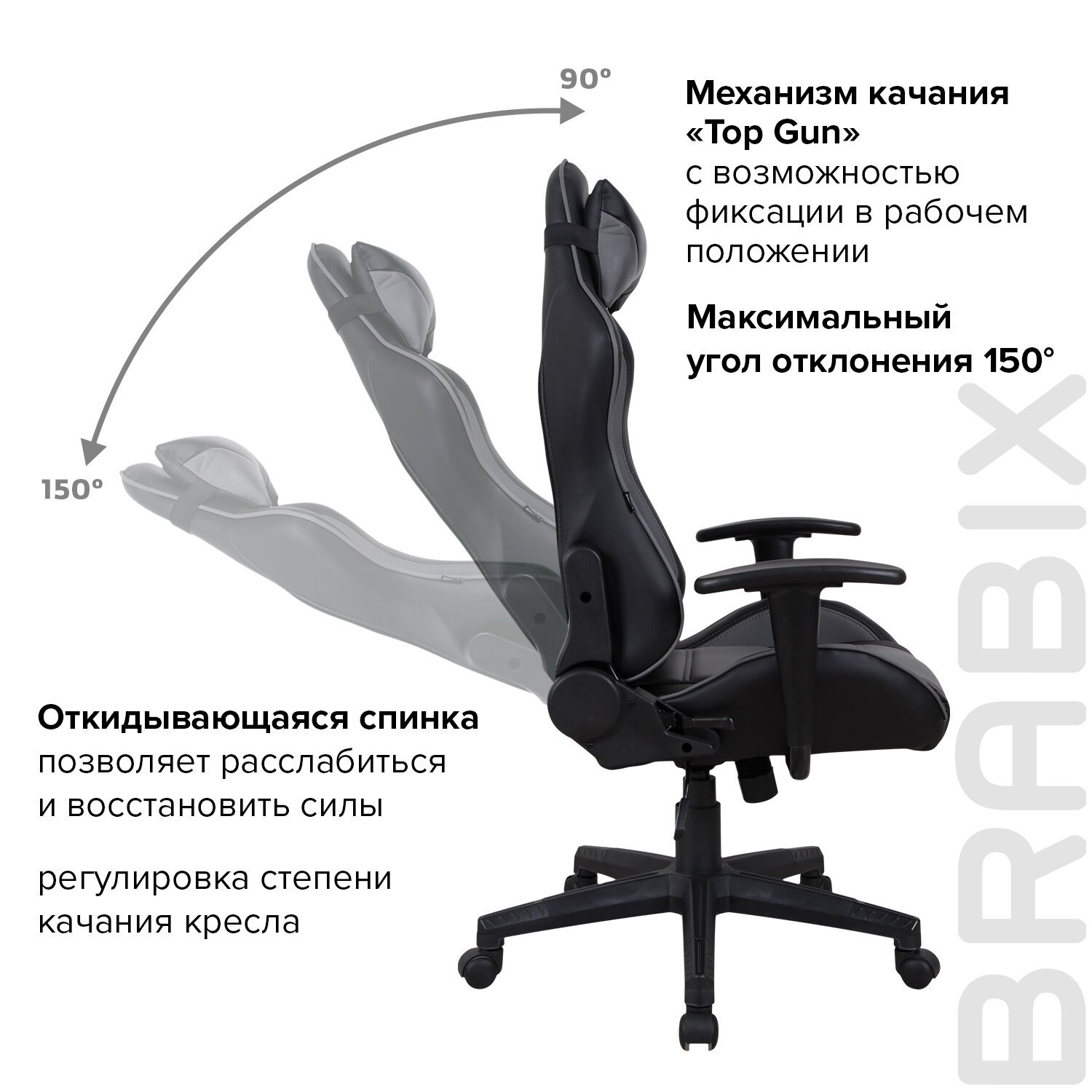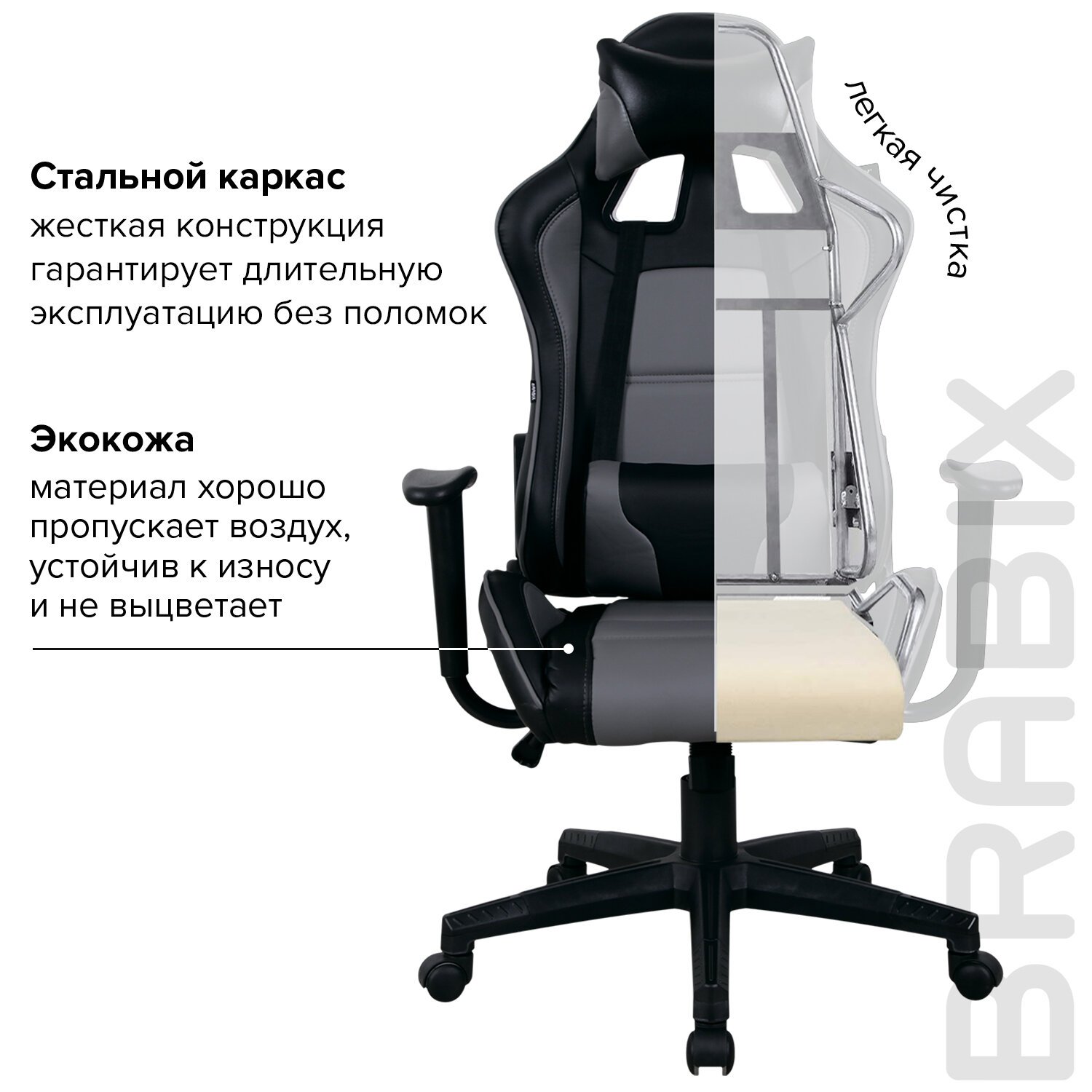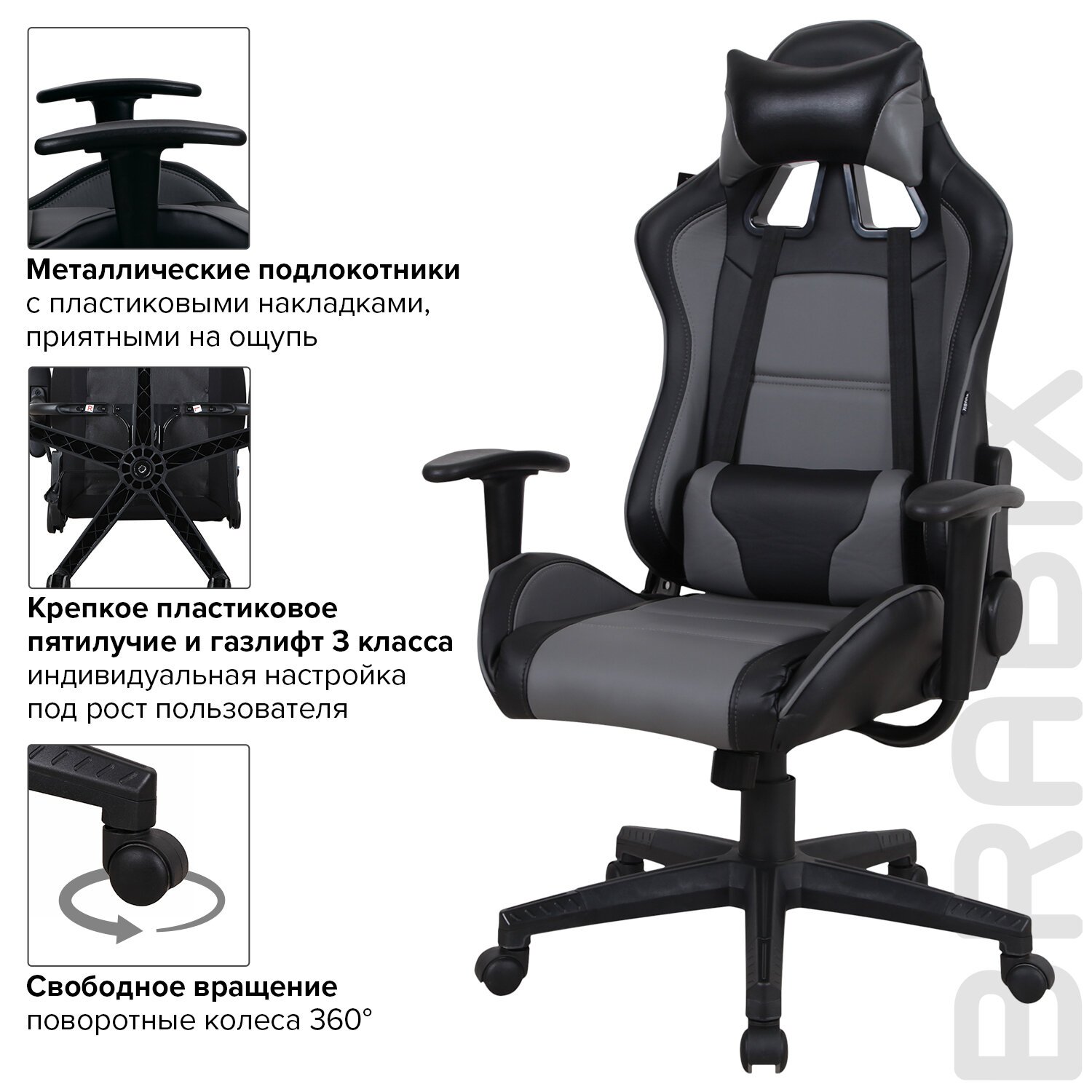 Кресло компьютерное BRABIX "GT Racer GM-100", две подушки, экокожа, черное/серое, 531926