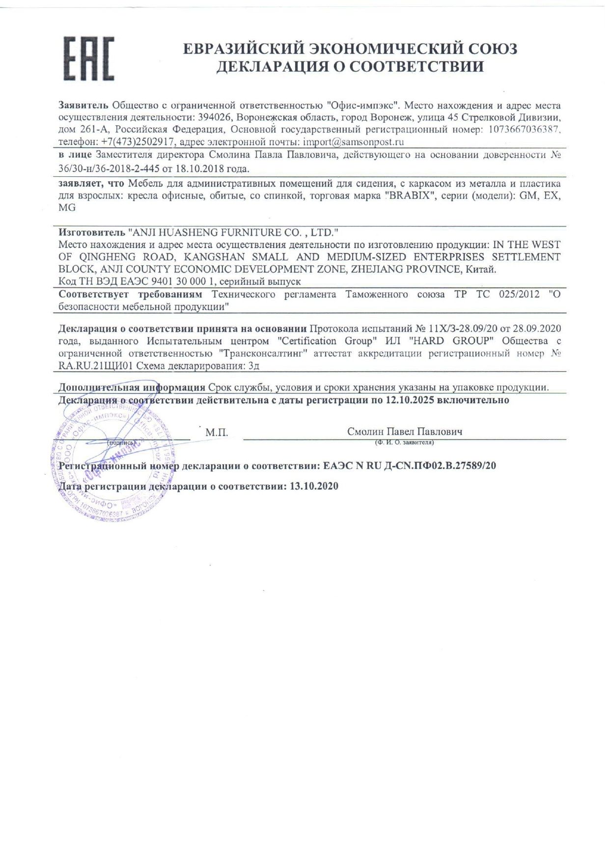 | Тип механизма качания | "Топ-ган" - качание с регулировкой под вес и фиксацией в 1 положении |