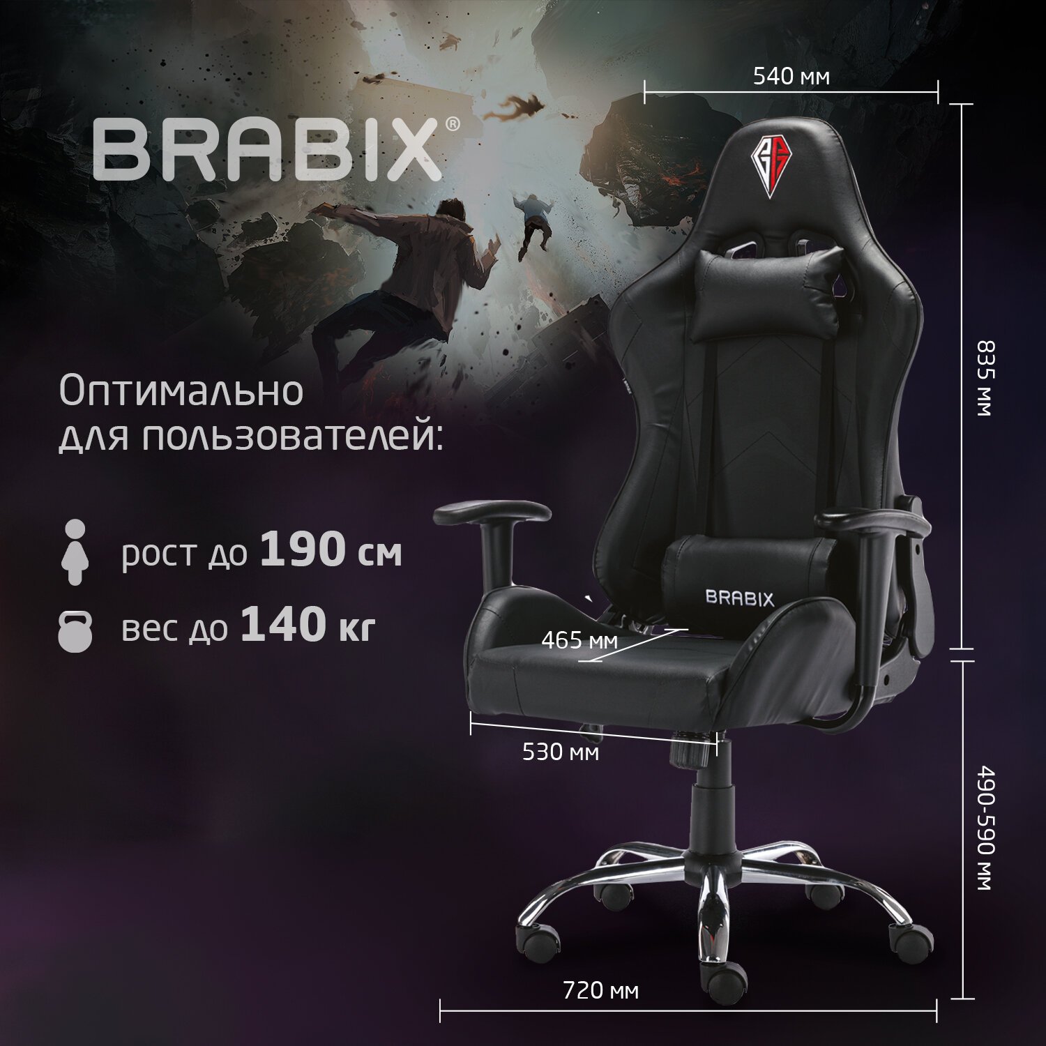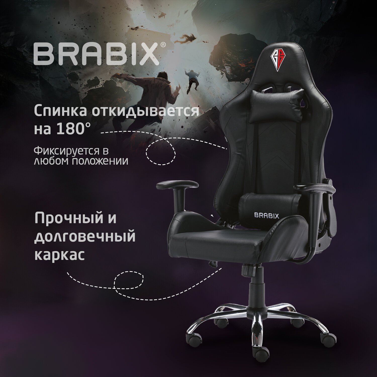 Кресло компьютерное BRABIX "Nitro GM-001", ткань, экокожа, черное, 531817
