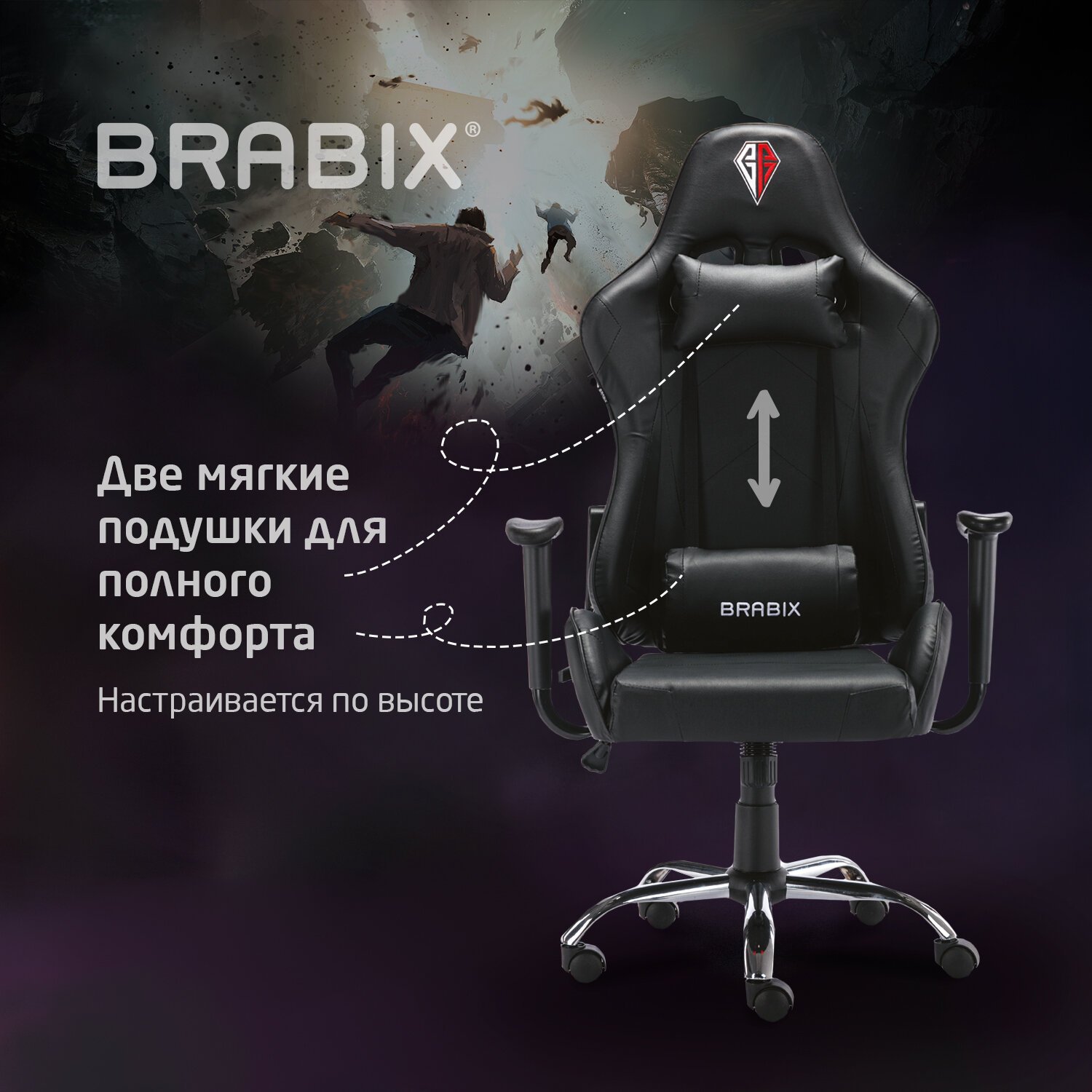 Кресло компьютерное BRABIX "Hunter GM-130", две подушки, экокожа, черное, 532798