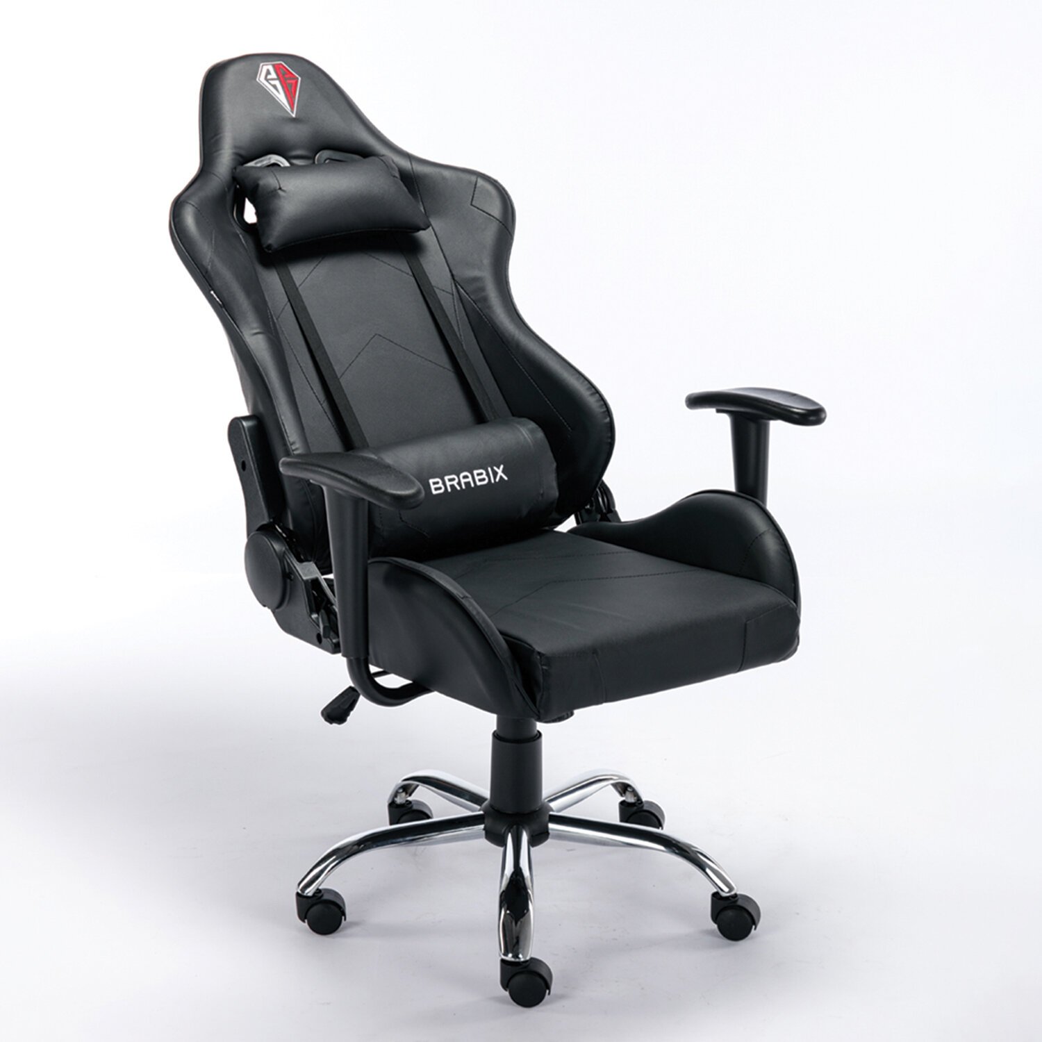 Кресло компьютерное BRABIX "GT Racer GM-100", две подушки, экокожа, черное/серое, 531926
