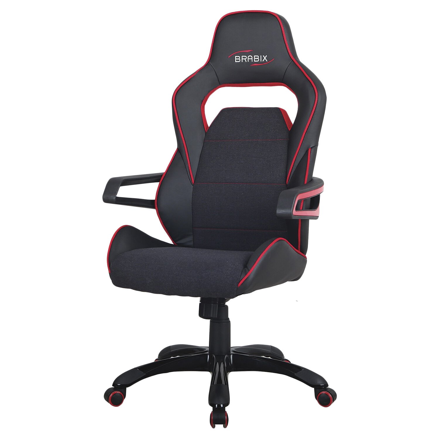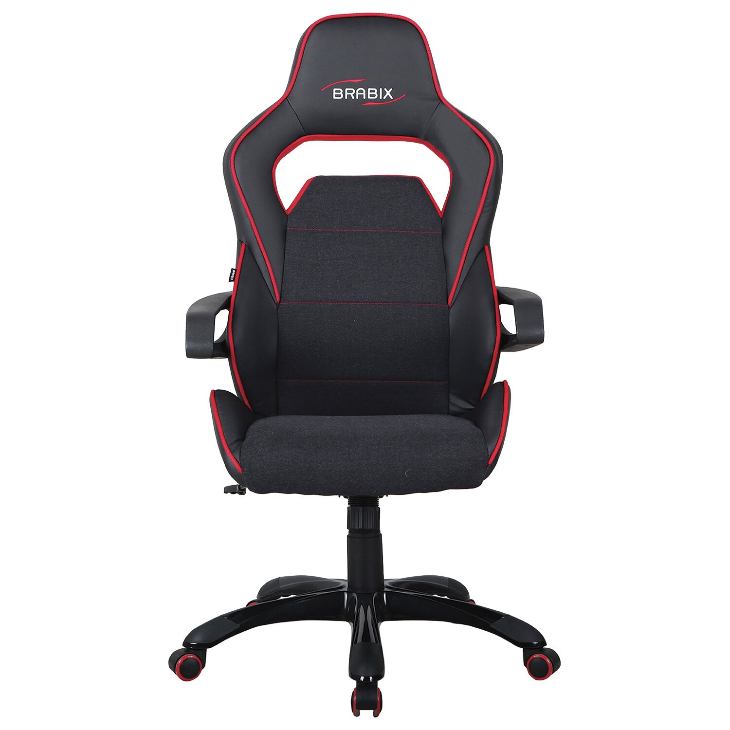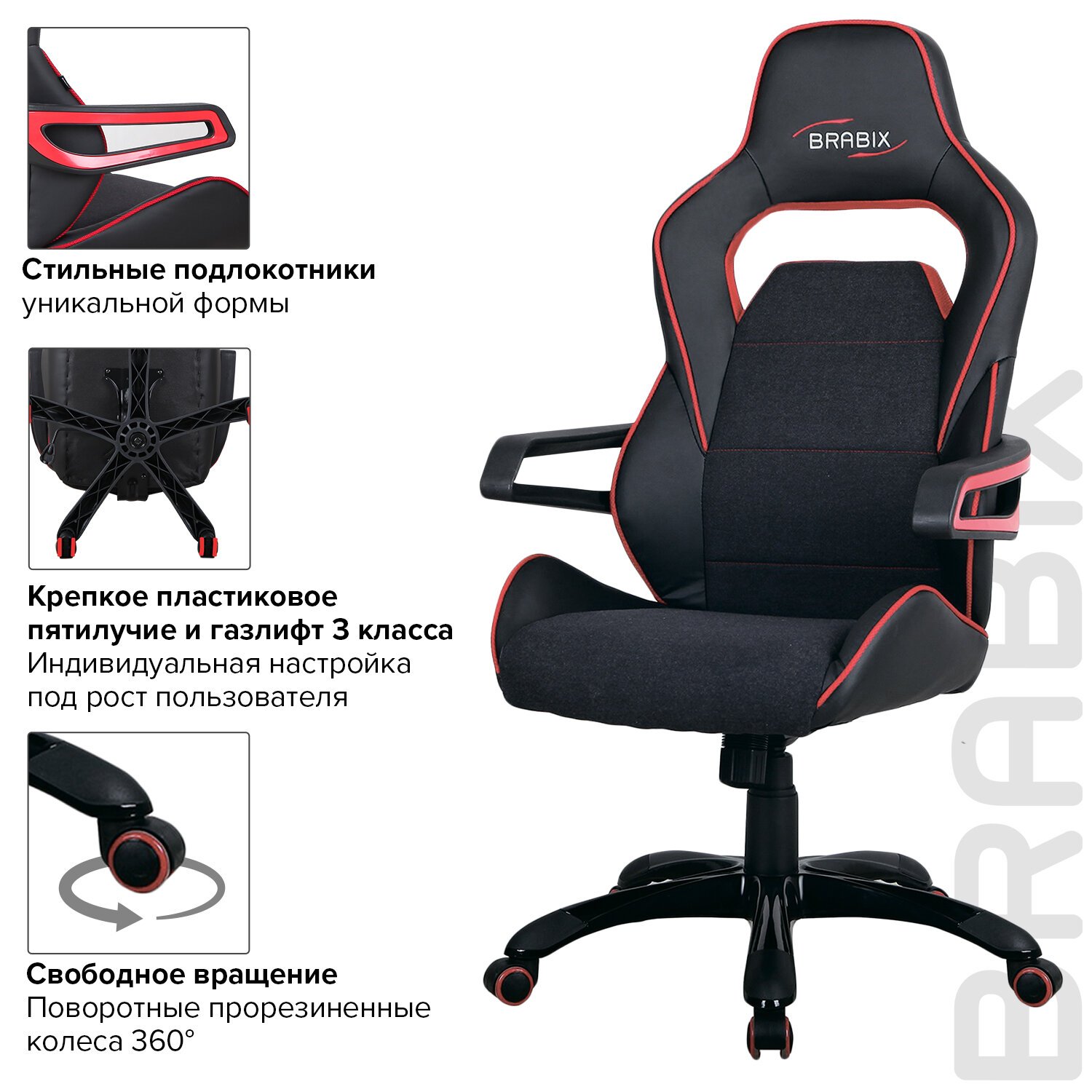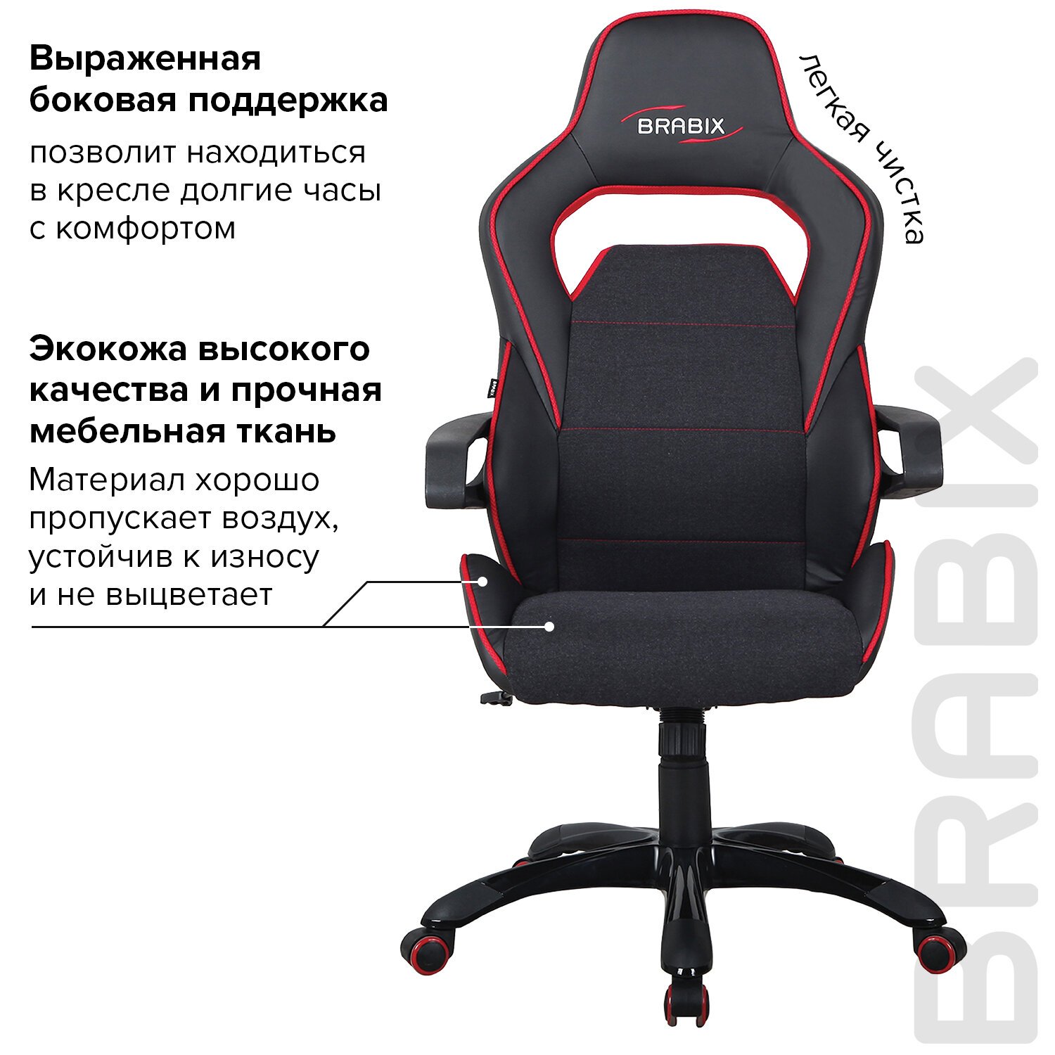 Кресло компьютерное BRABIX "Nitro GM-001", ткань, экокожа, черное, вставки красные, 531816