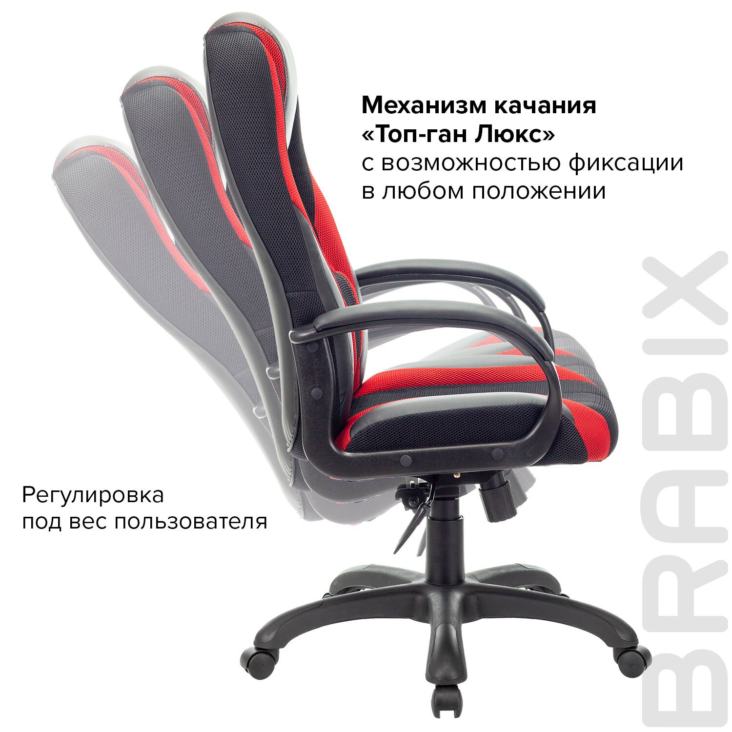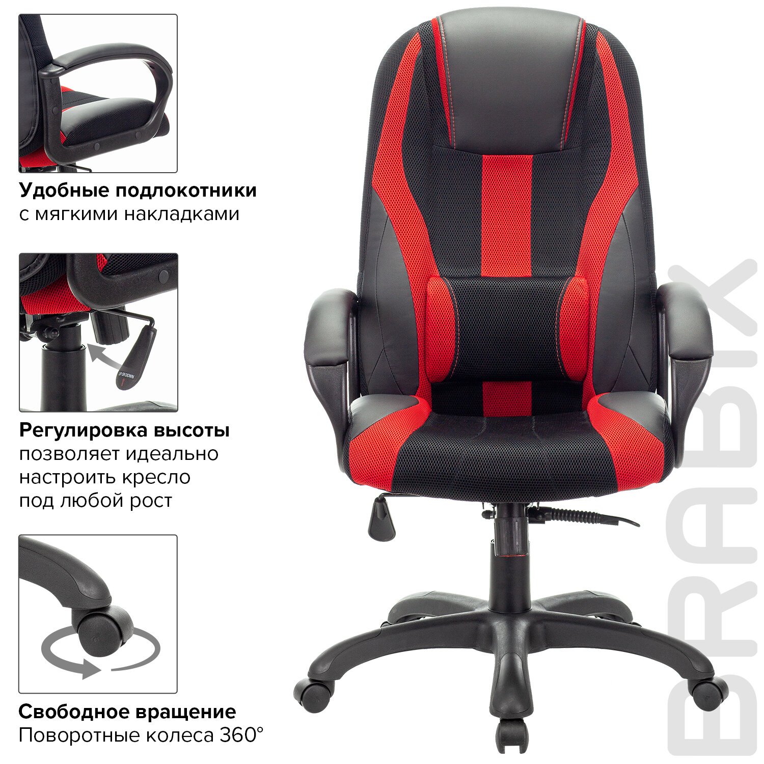 Кресло компьютерное BRABIX "Rider EX-544", экокожа черная/ткань красная, 531583