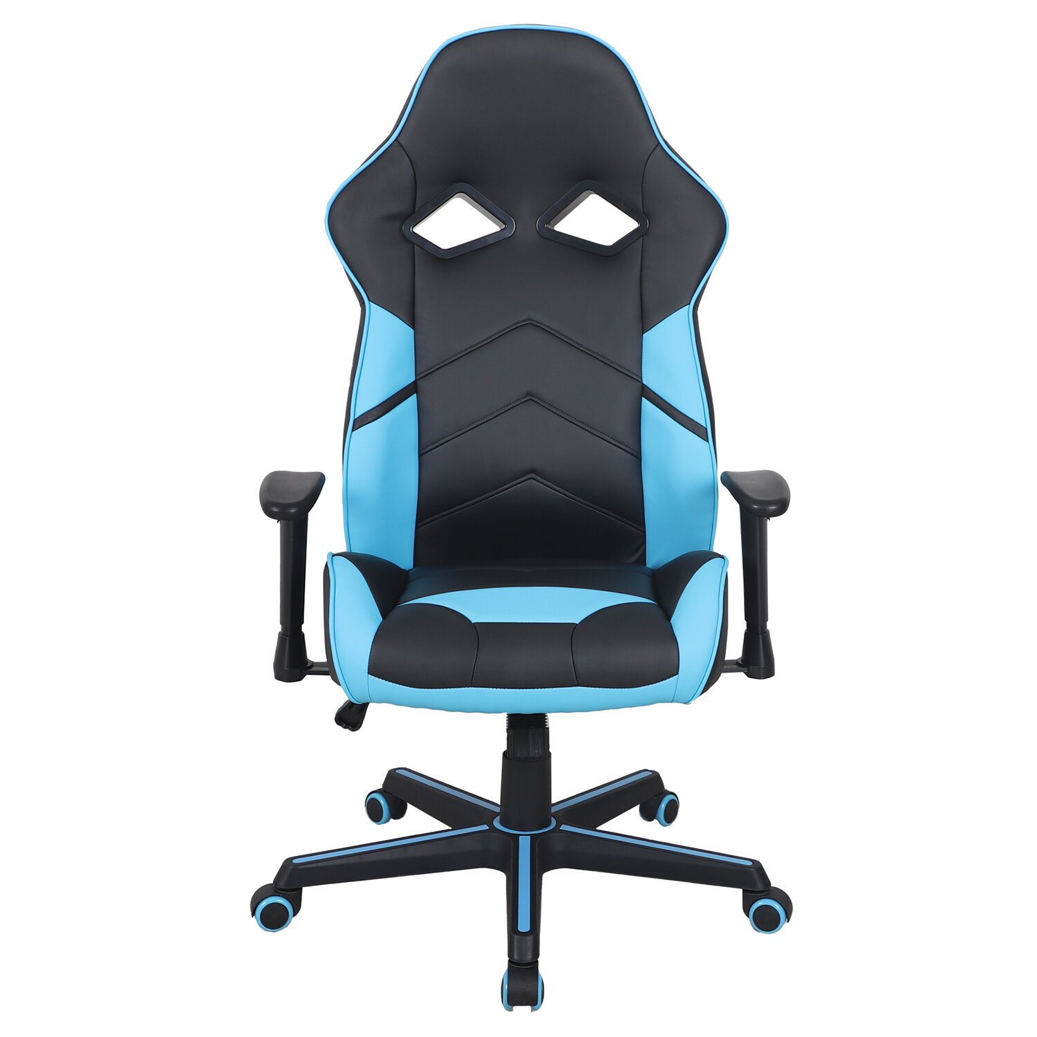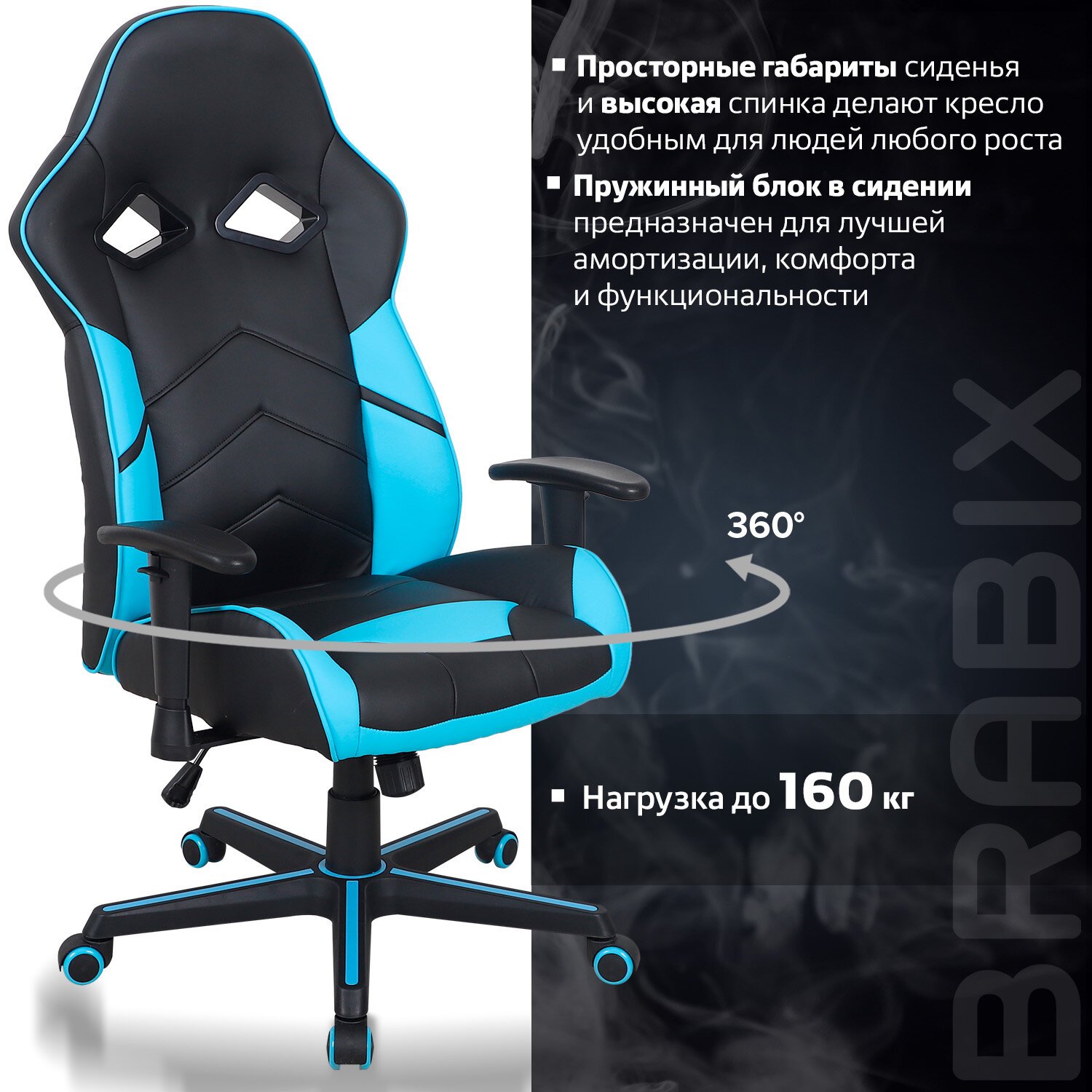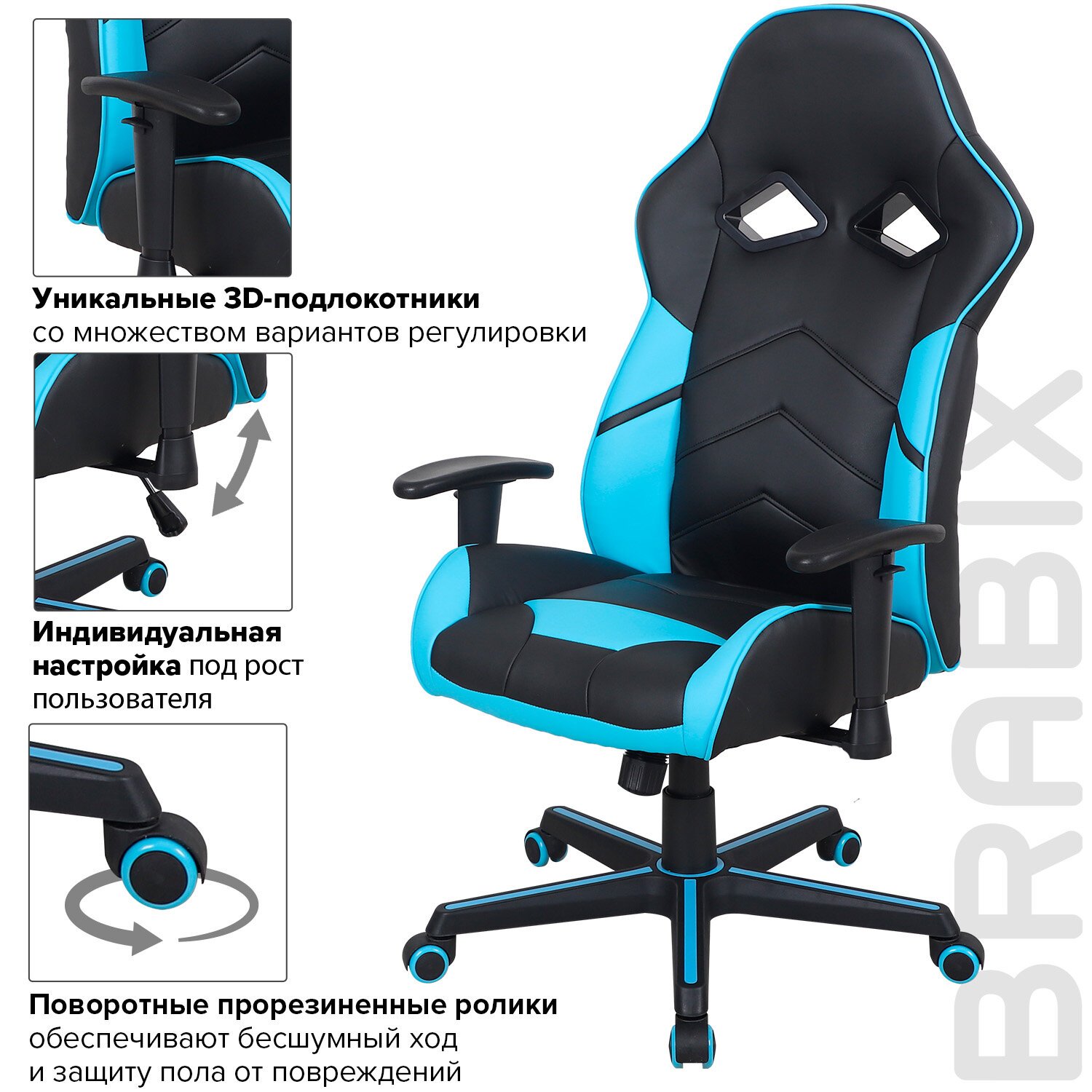 Кресло компьютерное BRABIX "Storm GM-006", регулируемые подлокотники, экокожа, черное/голубое, 532501